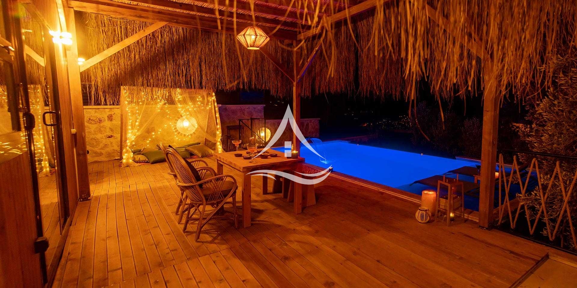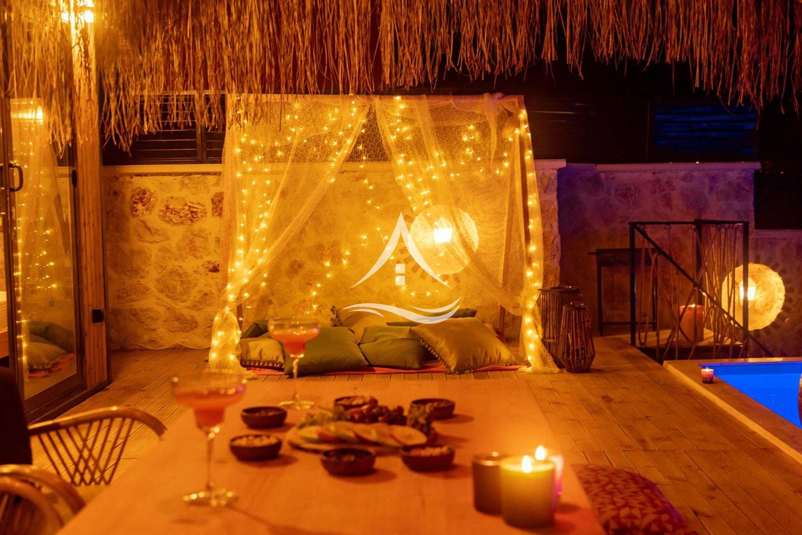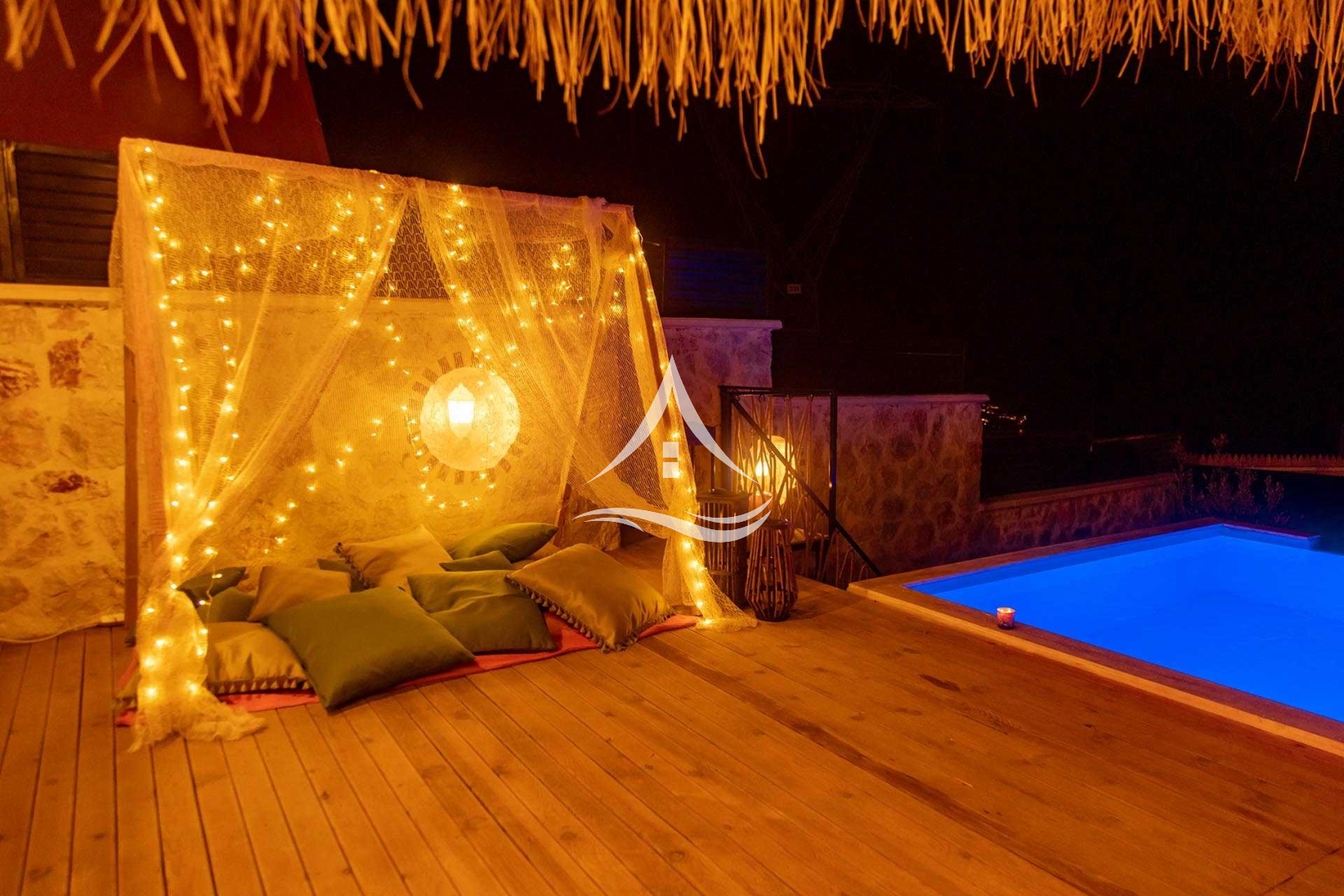 Muhteşem deniz manzarası ve Kalkan'ın benzersiz şehir manzarasını sahip Casablanca House son zamanların trednlerinden olan şık bir tıny yapı.2 Kişilik tatil evimizin 1 yatak odası bulunuyor.Havuz terasında jakuzi ve köşk alanı mevcut