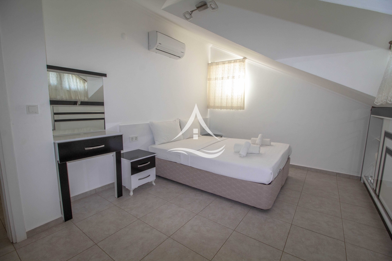 2 Adet tek kişilik yatak, elbise dolabı, klima, balkon. Bahçe ve havuz kenarına kolaylıkla geçiş imkanı bulunmaktadır.