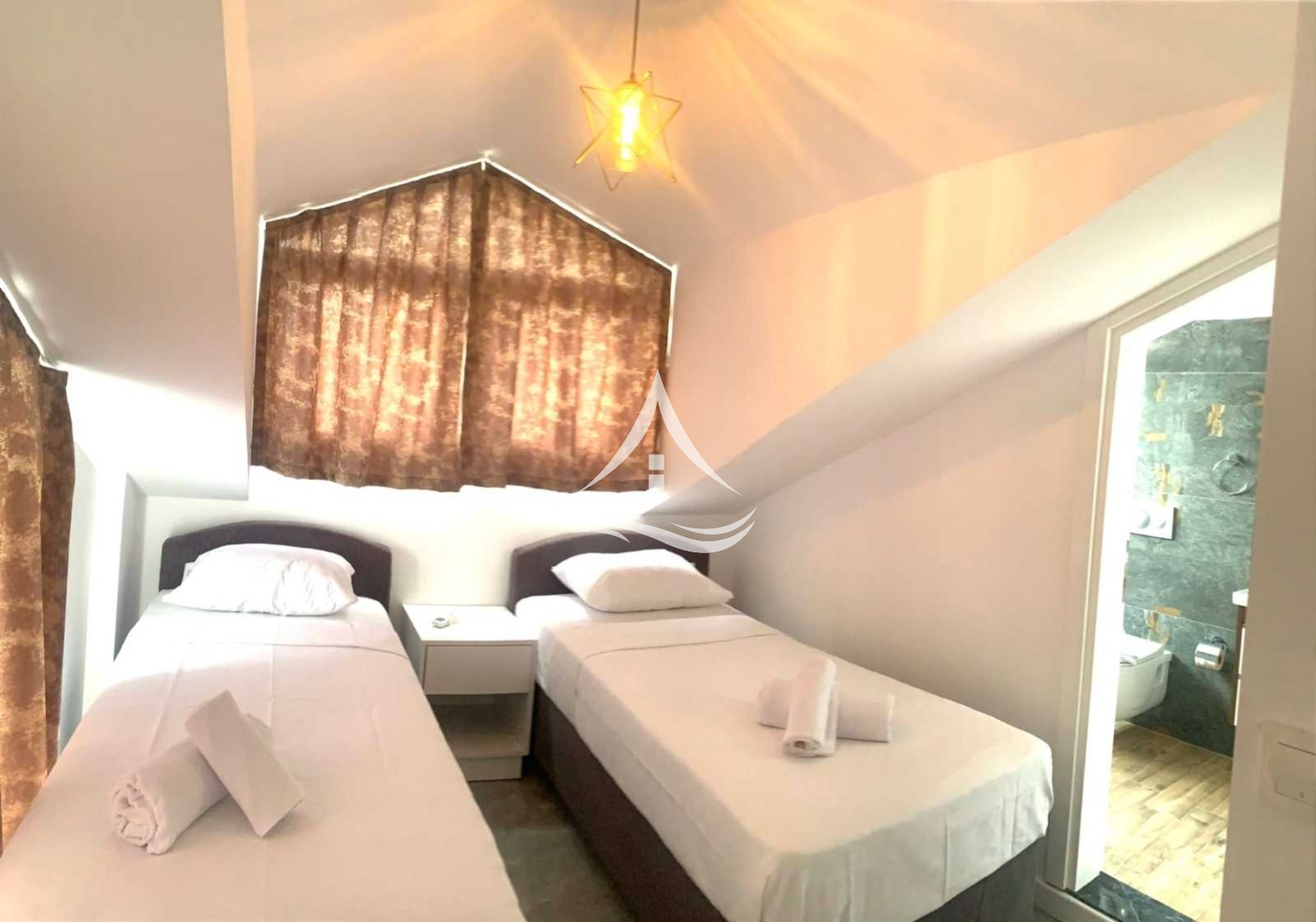 Detayları : İki adet tek kişilik yatak, Komidin, Klima, Gardrop, Banyo ve Balkon bulunmaktadır.