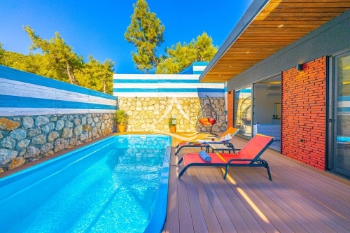 Villa Ahenk Kalkan İslamlar mevkiinde yer alan bir yatak odalı toplamda 2 kişi kapasiteli bir balayı villasıdır. Havuz alanı dışarıdan görünmeyecek şekilde şekilde dizayn edilip bu konuda hassasiyeti olan misafirlerimiz gönül rahatlığı ile tercih edebilirler.