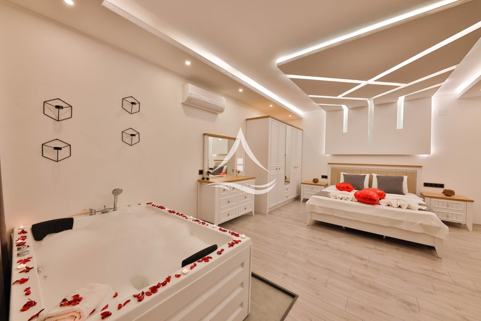 1. Yatak Odası : 1 Adet Çift Kişilik Yatak, Elbise Dolabı, Berjer ,  Klima, Komodin , Ebeveyn Banyo , Jakuzi