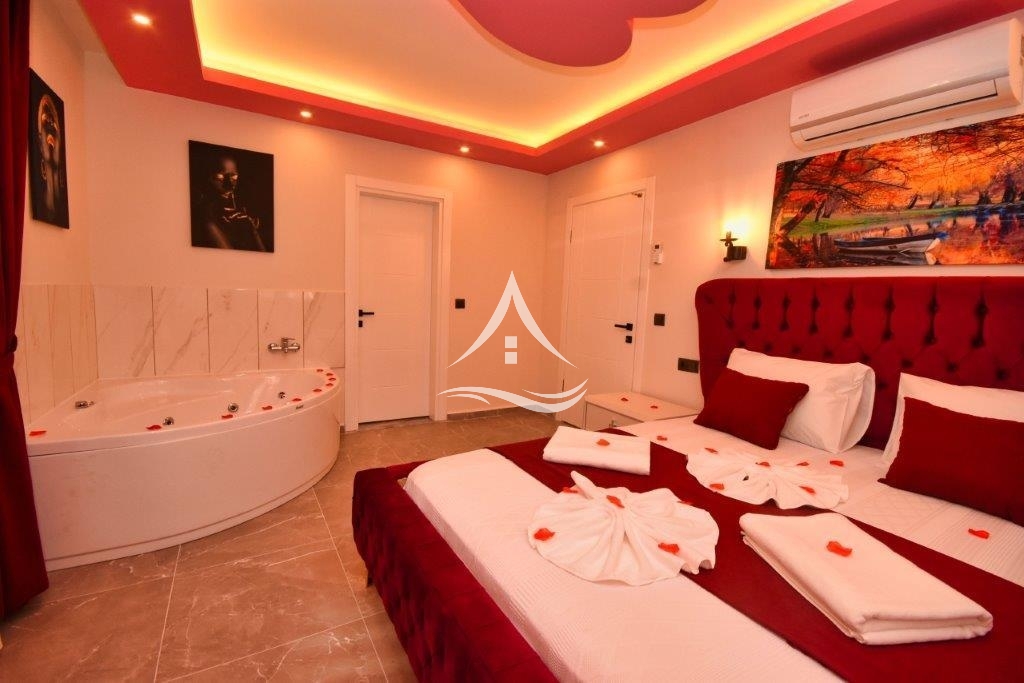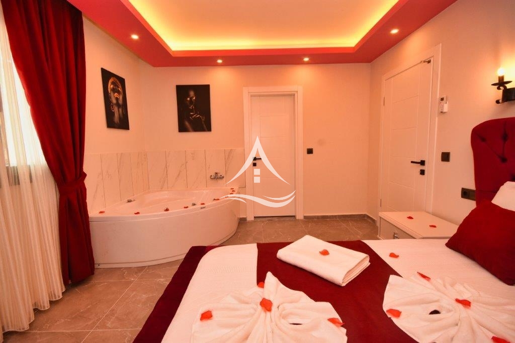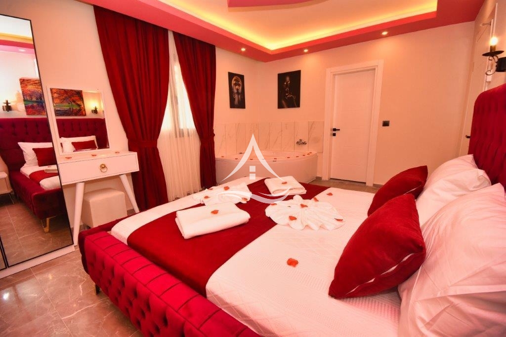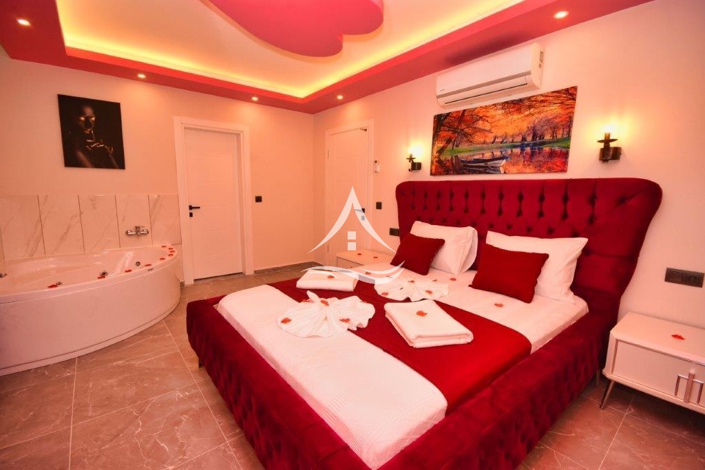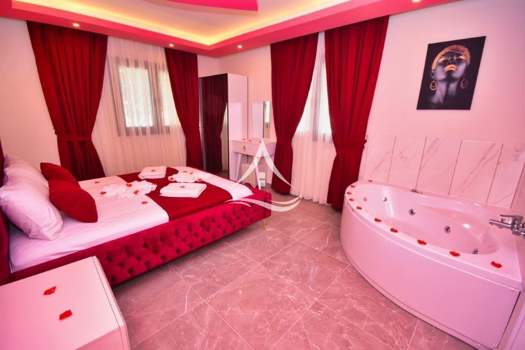 1. Yatak Odası : 1 Adet Çift Kişilik Yatak, Klima, Komodin , Elbise Dolabı, Makyaj Masası , Ebeveyn Banyo, Jakuzi