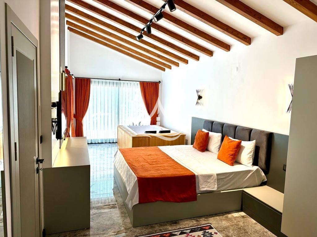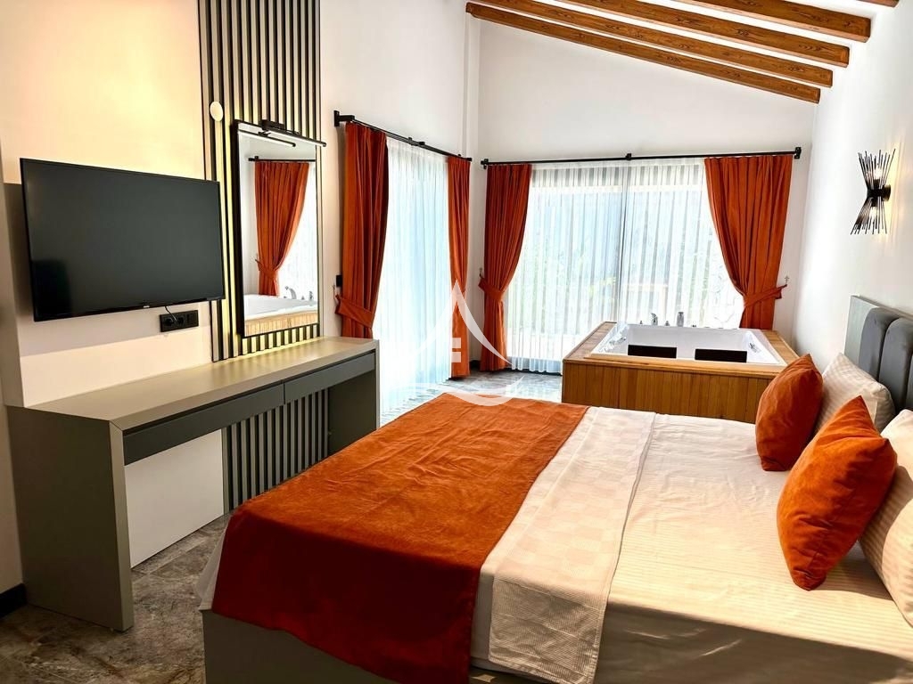 1. Yatak Odası : 1 Adet Çift Kişilik Yatak, Klima, Komodin , Elbise Dolabı, TV, Ebeveyn Banyo ,Jakuzi