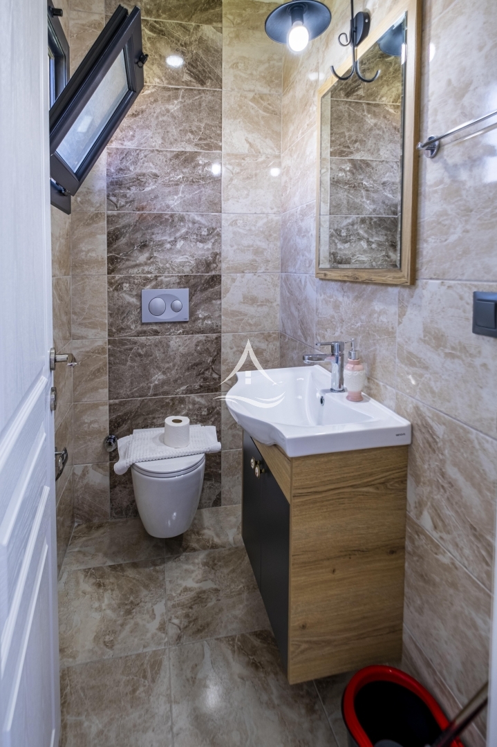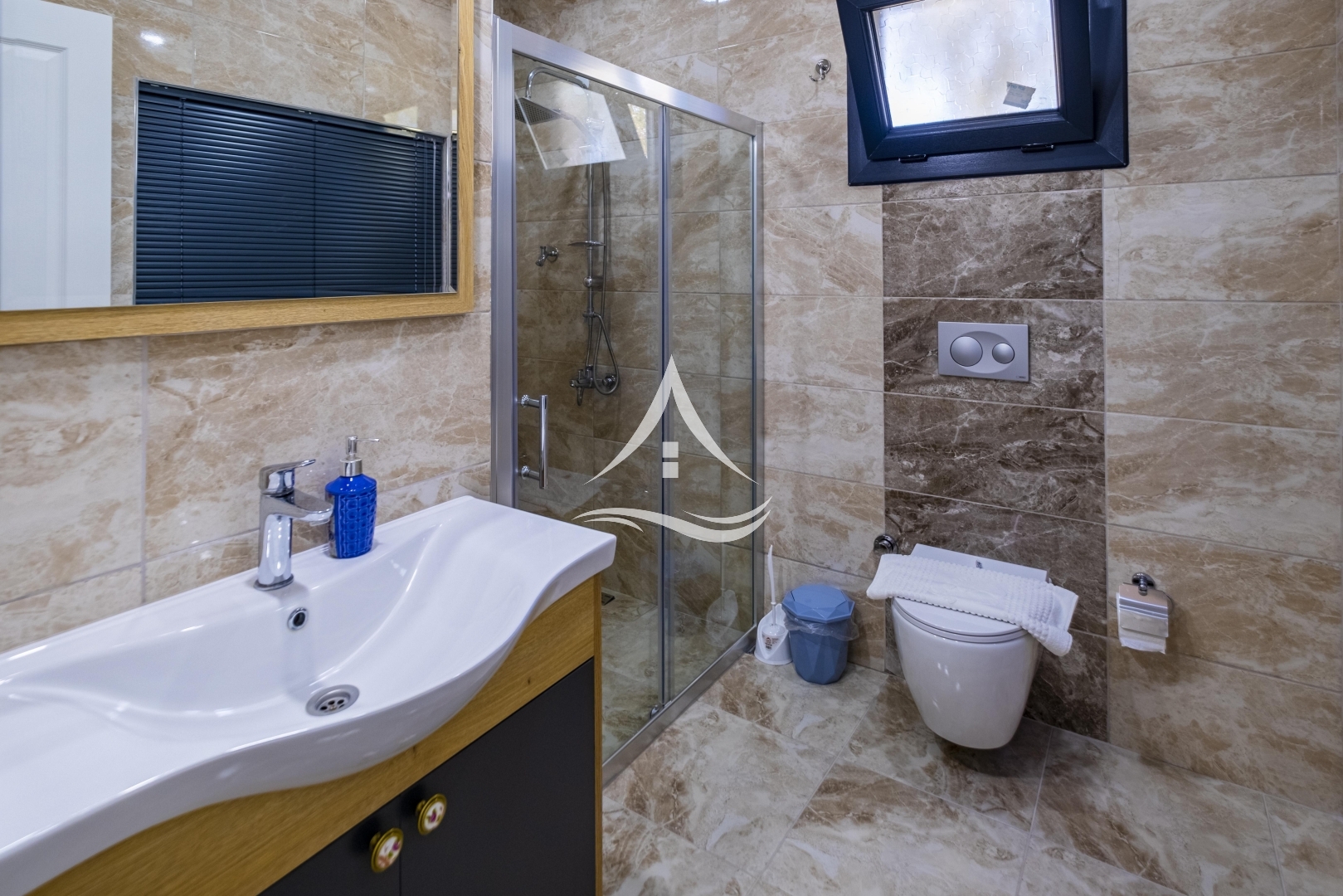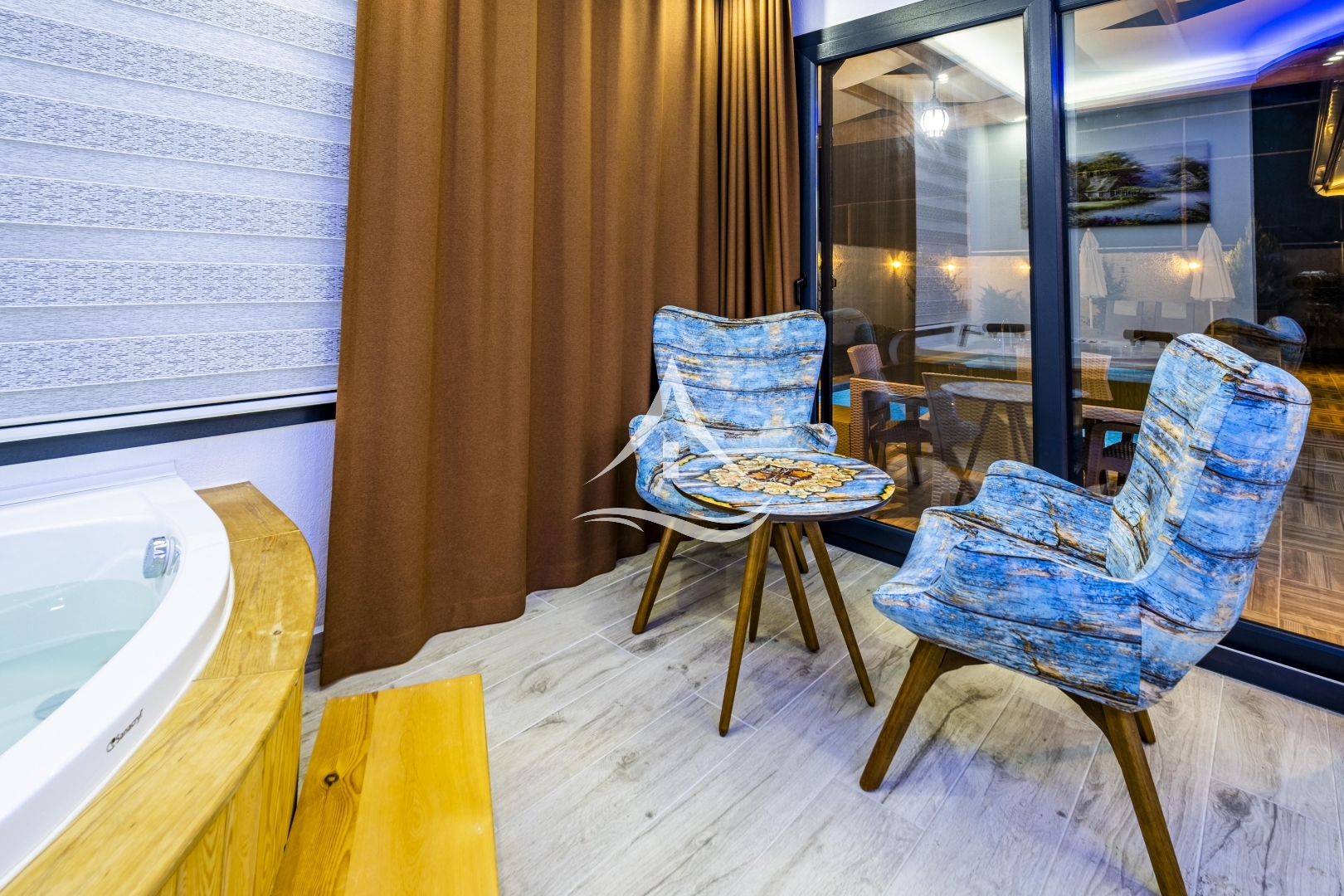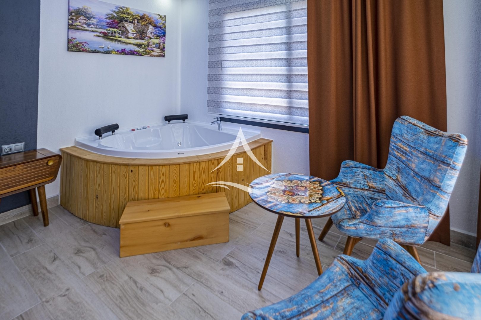 1. Yatak Odası : 1 Adet Çift Kişilik Yatak, Klima, Komodin, Elbise dolabı, Jakuzi, Ebeveyn banyo