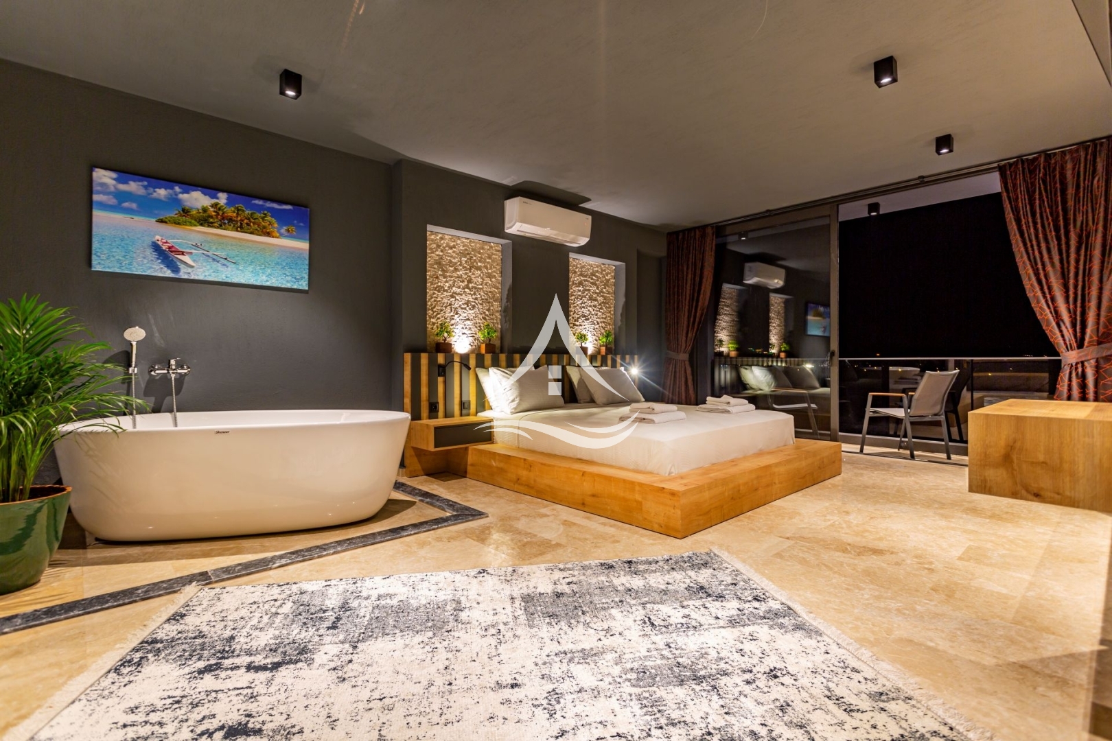 1. Yatak Odası : 1 Adet Çift Kişilik Yatak, Klima, Komodin , Makyaj Masası, Elbise Dolabı,  Ebeveyn Banyo