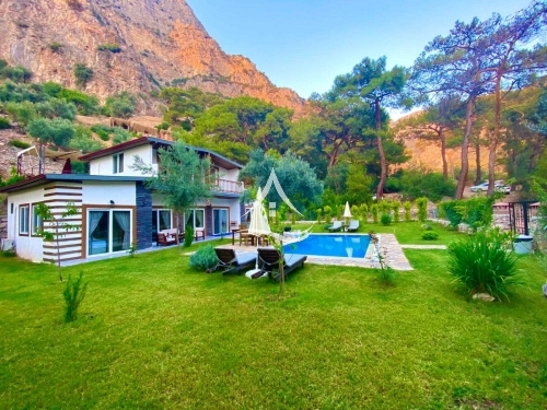 Fethiye'nin Ölüdeniz bölgesinde bulunan Villa Böğürtlen 6 kişiye kadar yapılacak konaklamalar için uygun kapasiteye sahiptir. 3 yatak odalı villamızın bütün odaları ebeveyn banyoludur. Tatil evimizin havuz terası dışarıdan görüldüğü için açık havuzlu villalar kategorisinde yer almaktadır.