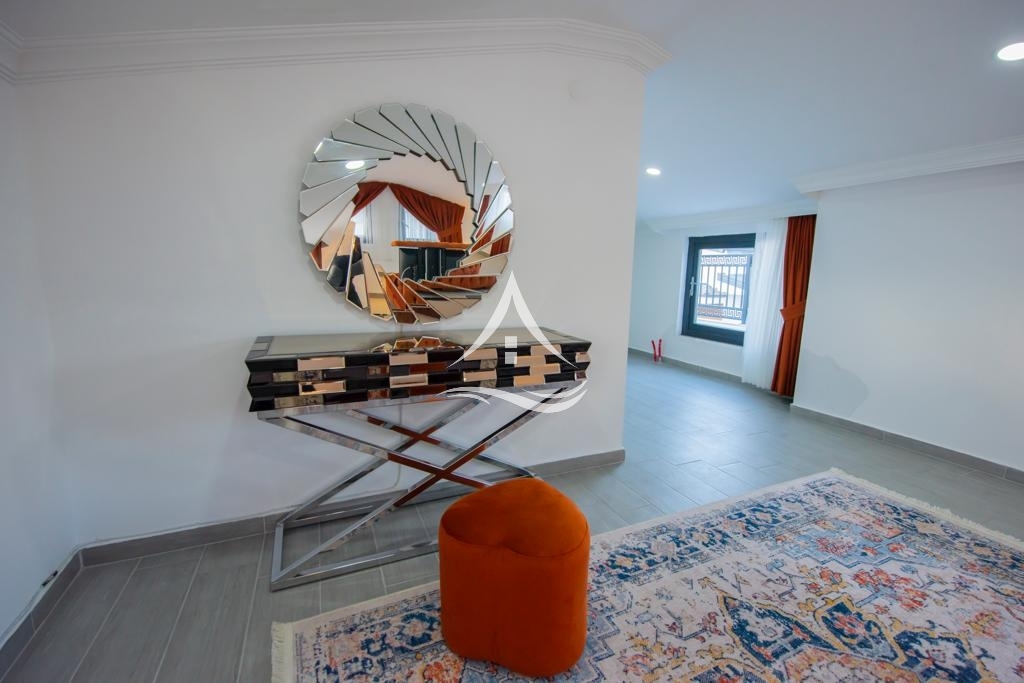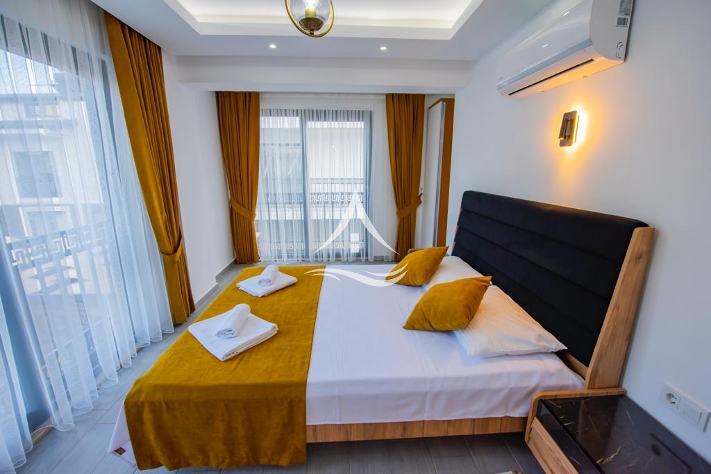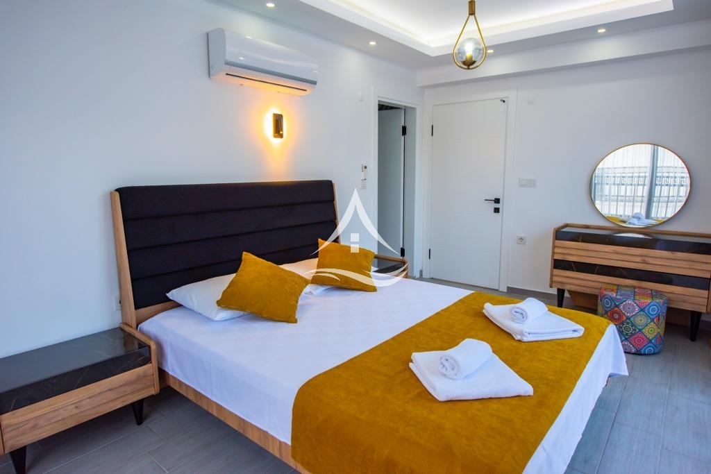 1.Yatak Odası : Aile Yatak Odası (1.Katta) : 1 Adet Çift kişilik yatak, Komidin, Klima, Elbise dolabı, Makyaj masası, Ebeveyn Banyo