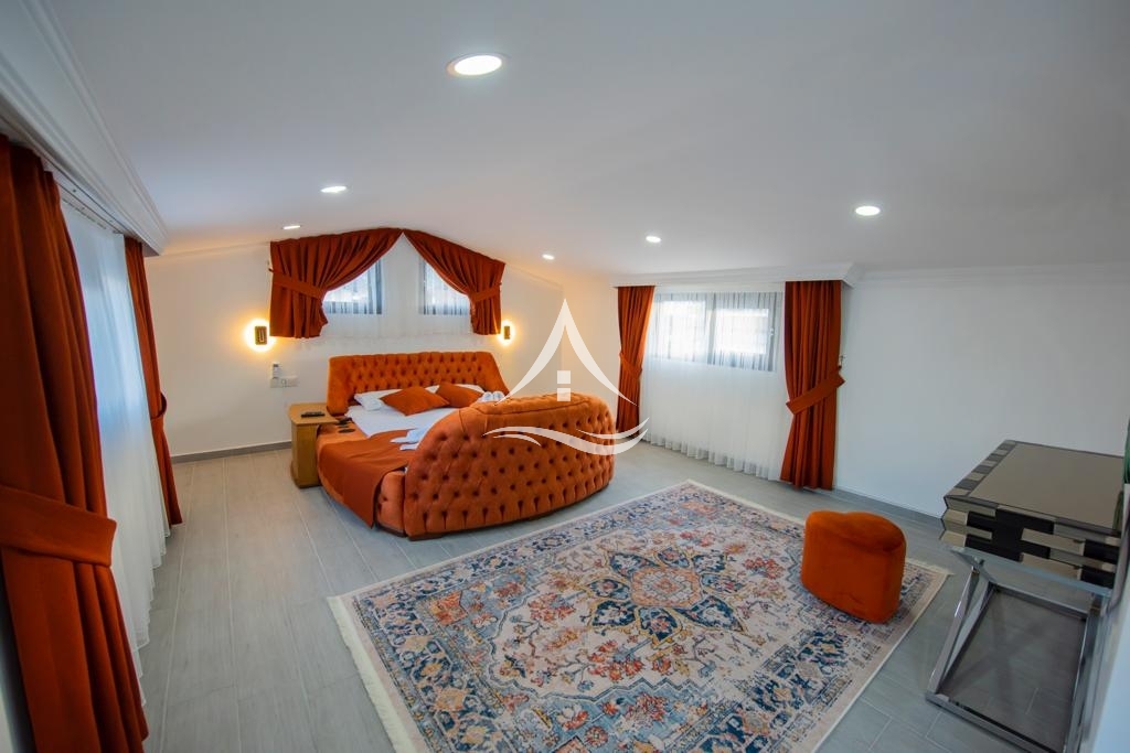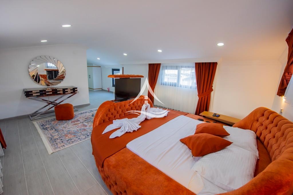 3.Yatak Odası : Aile Yatak Odası (Teras Katta) : 1 Adet Çift kişilik yatak, Komidin, Klima, Elbise dolabı, Ebeveyn banyo ve Çift kişilik jakuzi