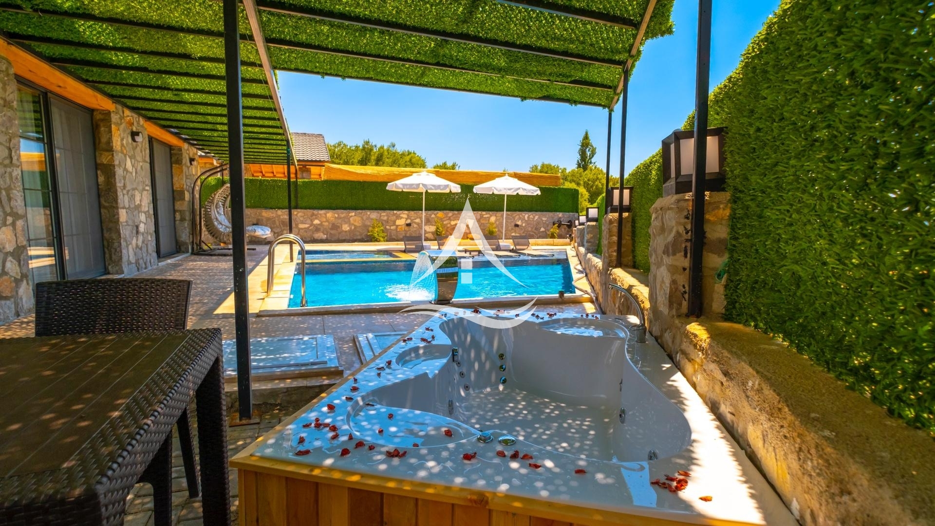 Jakuzili tatil evimiz Fethiyenin Yakaköy mevkiinde konumlanmıştır. Villa Cappio Trio 2 yatak odalıdır. 4 kişilik konaklama kapasitesine sahiptir. Geniş bahçe alanında sevdiklerinizle oturma grubunda oturup güzel zamanlar geçirebilir, minik misafirlerimizi çocuk havuzunda eğlenirken izleyebilir, sizler ise açık alan jakuzisinde güneşin tadını çıkarabilirsiniz. Doğanın güzelliği eşliğinde sevdiklerinizle unutulmaz bir tatil geçirebilirsiniz. Bu villamızın hemen yanında yer alan Villa Cappio, Villa Cappio Duo beraber tatil yapmak isteyen aileler ve çiftler için ideal bir seçenektir. Villamıza ulaşımda belirli bir yol stabilizedir.