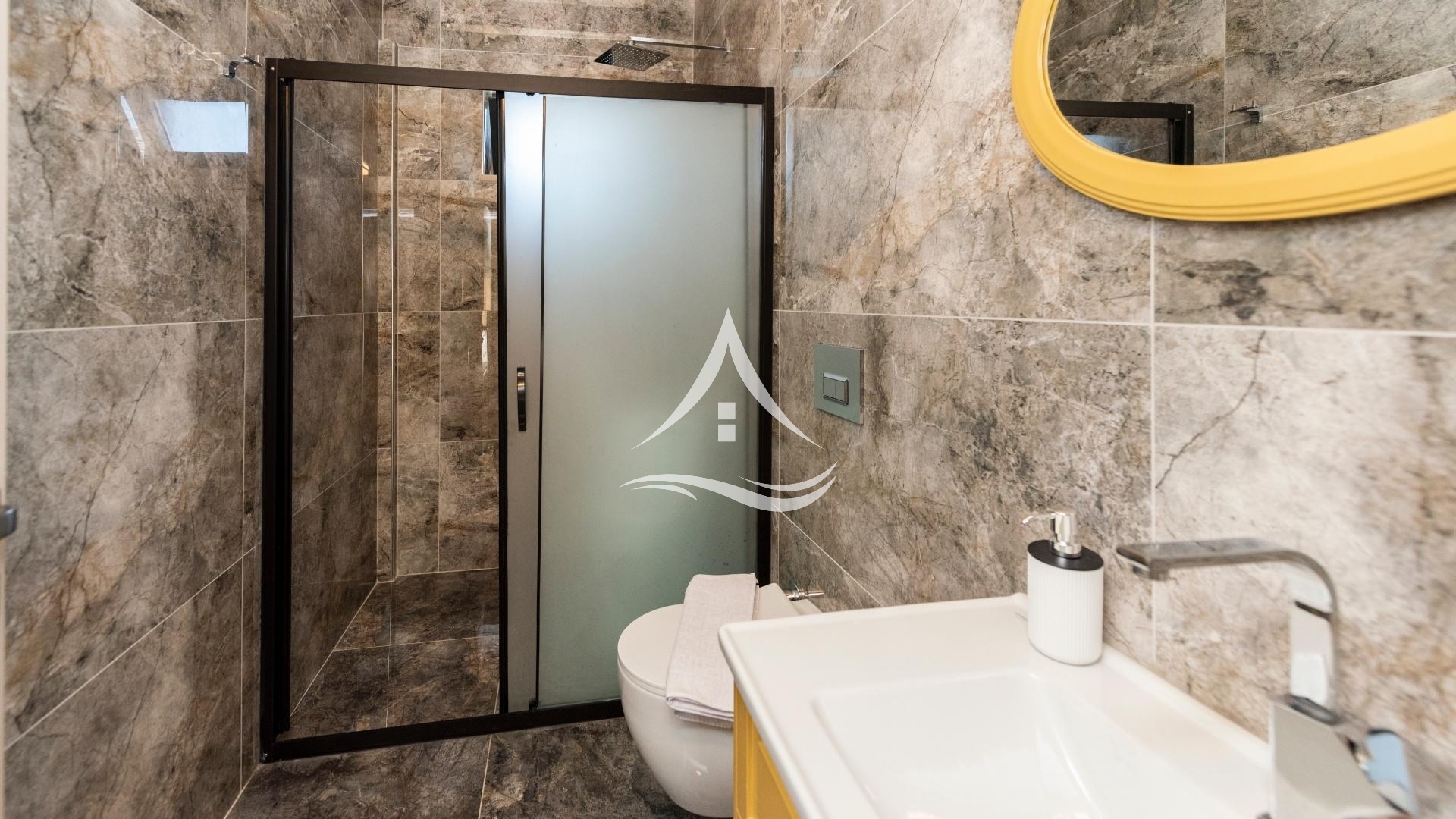 1. Yatak Odası : 1 Adet Çift Kişilik Yatak, Klima, Komodin, Elbise dolabı, Ebeveyn banyo