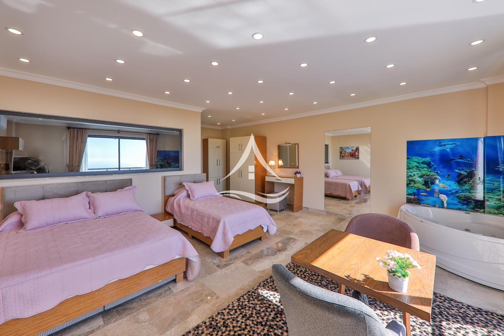 5. Yatak Odası : 1 Adet Çift Kişilik Yatak, 1 Adet Tek Kişilik Yatak Klima , Komodin , Elbise Dolabı, Makyaj Masası, TV, Ebeveyn Banyo, Jakuzi