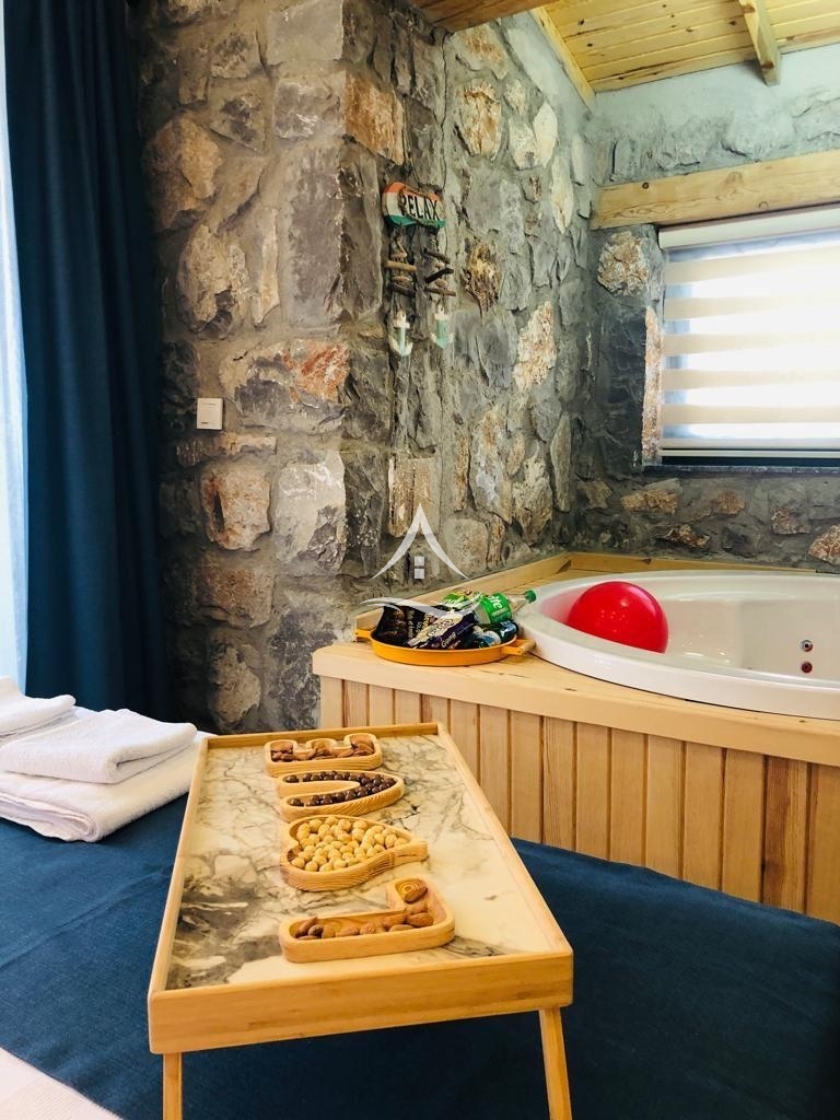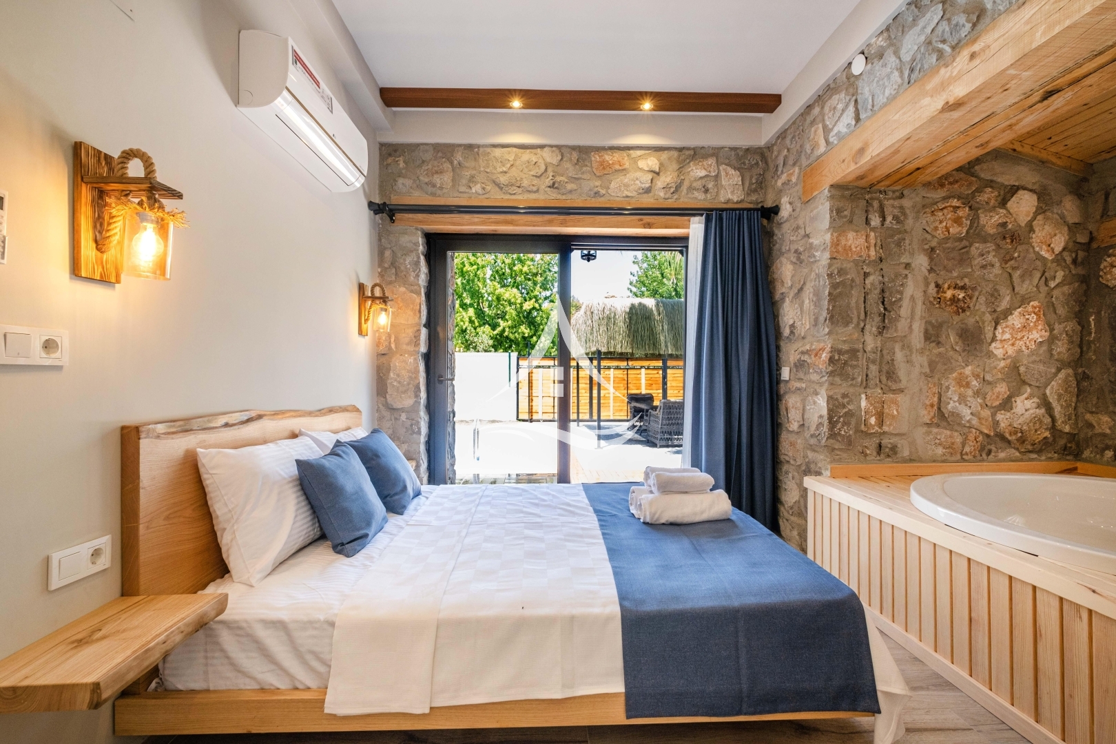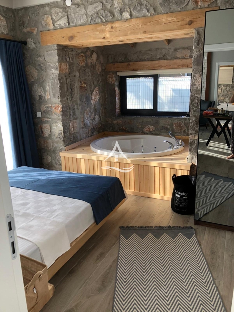1. Yatak Odası : 1 Adet Çift Kişilik Yatak, Klima, Elbise dolabı, Komodin, Jakuzi, Ebeveyn Banyo