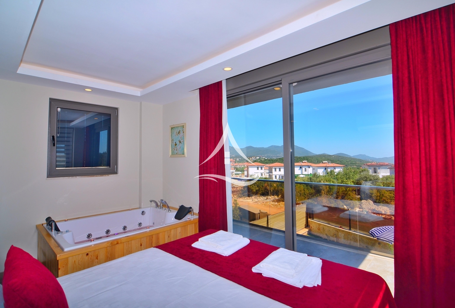 1. Yatak Odası : 1 Adet Çift Kişilik Yatak, Makyaj Masası, Elbise Dolabı, ,Klima, Komodin, Ebeveyn Banyo,Jakuzi