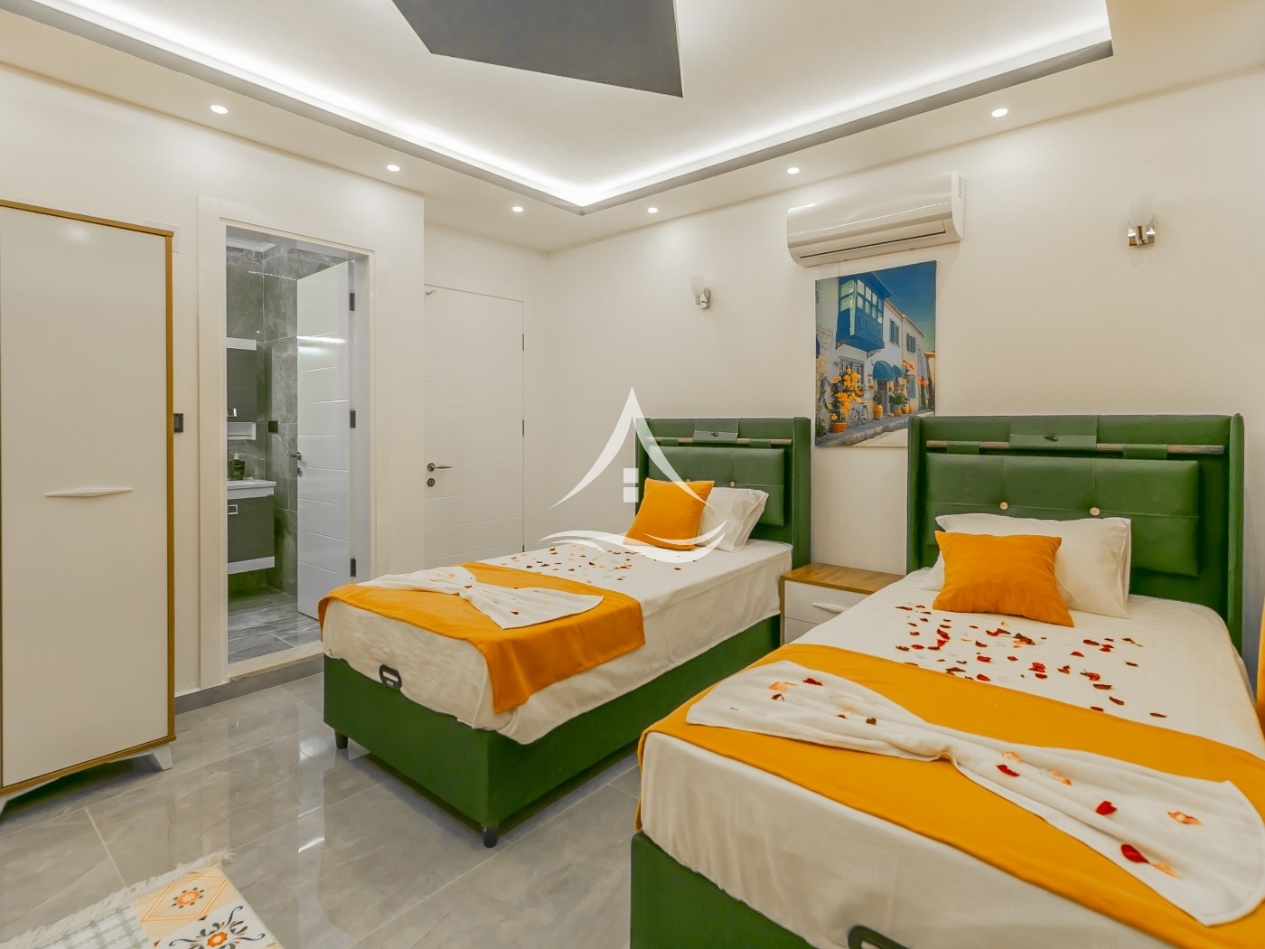 2.Yatak Odası : 2 Adet Tek Kişilik Yatak ,Klima ,Komodin, Elbise Dolabı , Ebeveyn Banyo