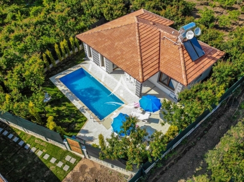 Fethiye Yanıklar mevkiinde bulunan 2 yatak odalı Villa Elif 4 kişiye kadar yapılacak konaklamalar için uygun kapasiteye sahiptir. Doğa içerisinde sakin atmosfere sahip villamızın havuz ve bahçe alanı dışarıdan görülmeyecek şekilde dizayn edildiği için korunaklı konsepte uygundur. Suit yatak odasında ebevyn banyosu ve jakuzisi bulunmaktadır. Salonda bulunan koltuk kullanımı ile konaklama kapasitesi 5 kişiye kadar yükseltilebilir. Villa Fethiye şehir merkezine 10 dakika sürüş mesafesinde yer almaktadır.