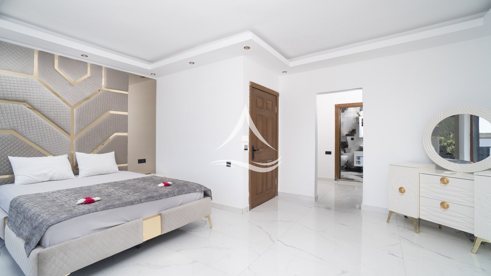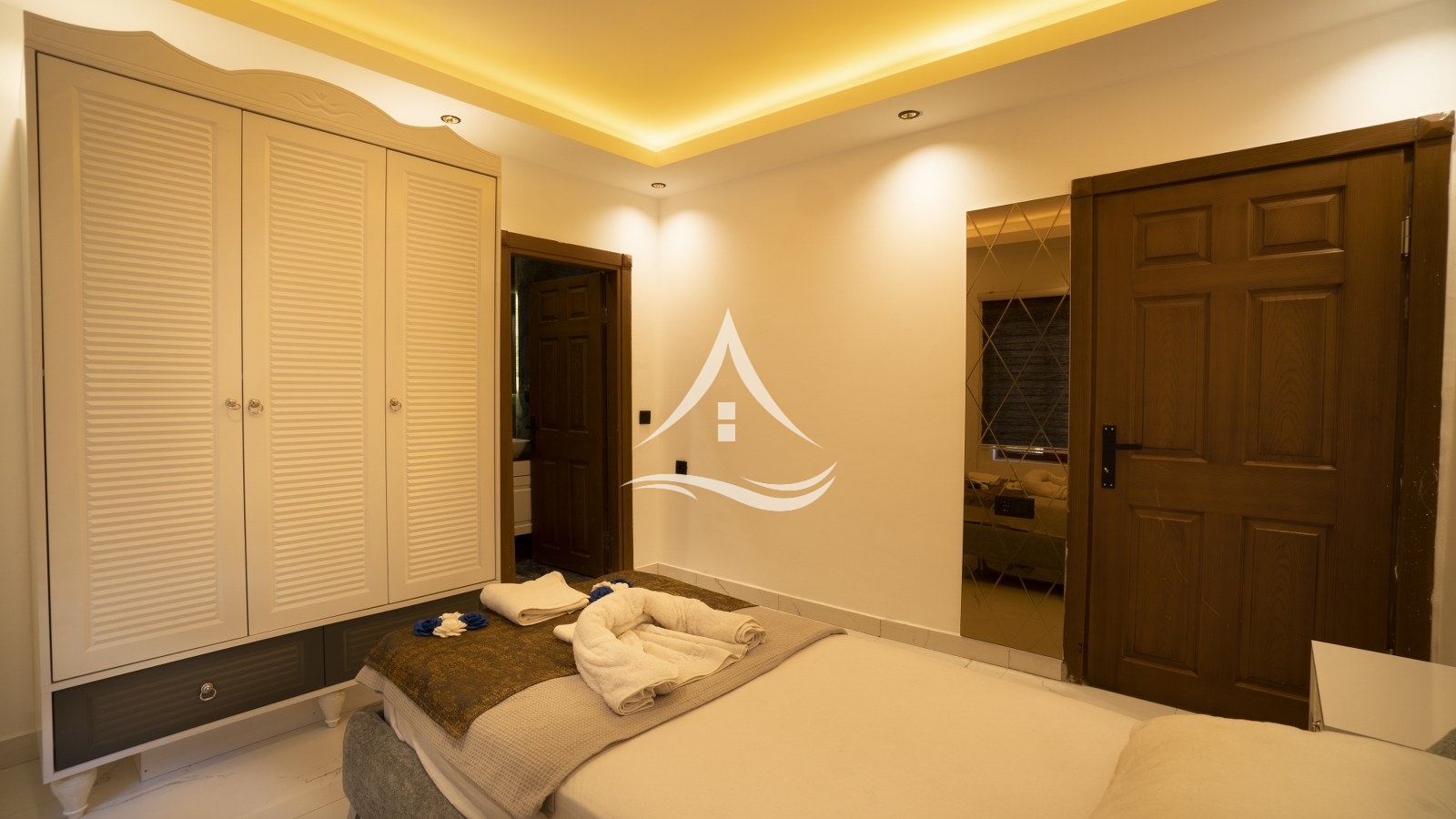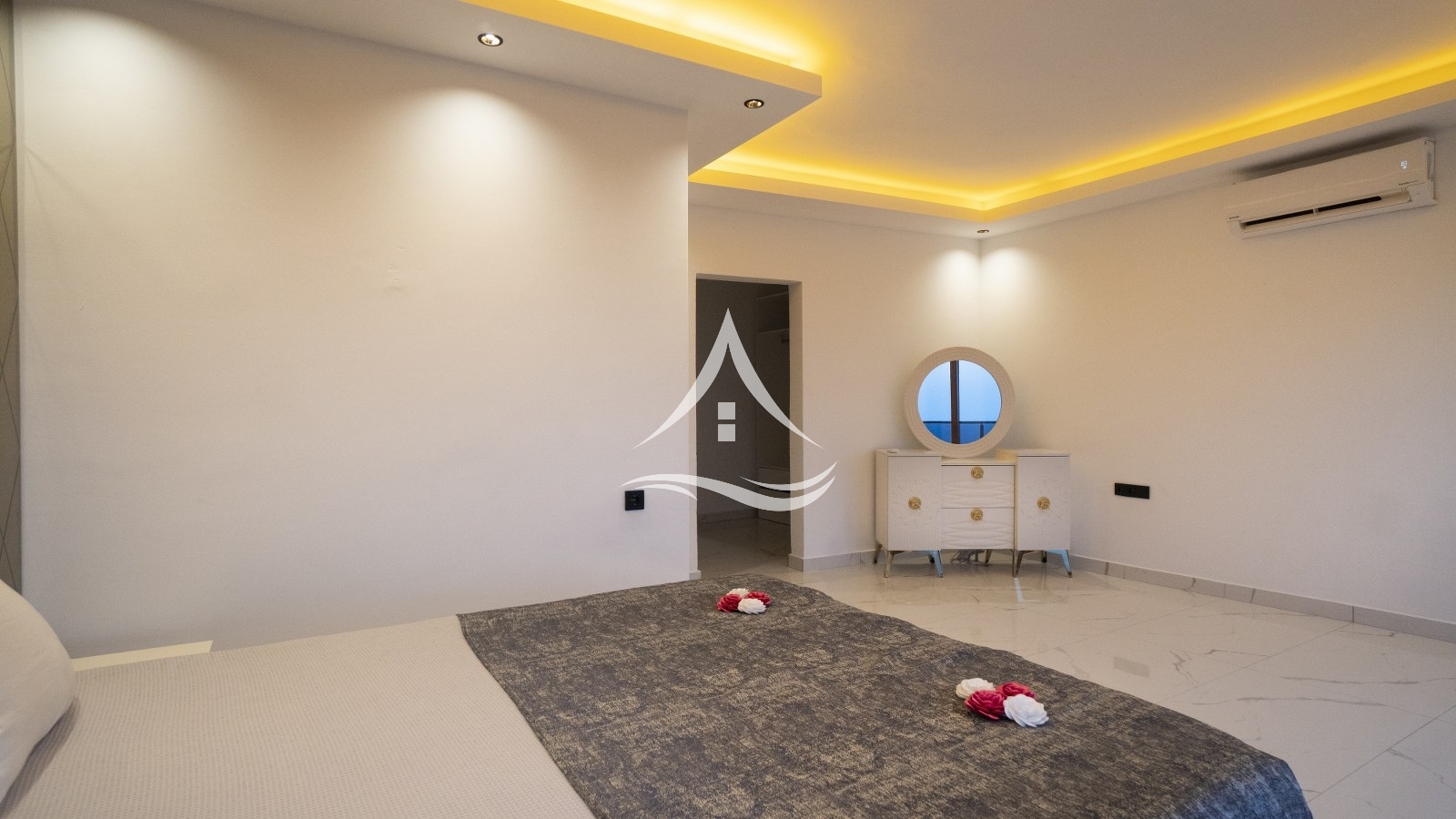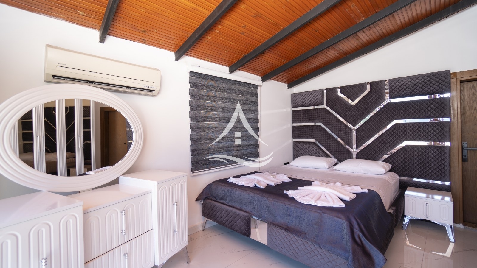 1. Yatak Odası :  1 Adet Çift Kişilik Yatak, Ebeveyn Banyo, Komodin, Elbise Dolabı, Makyaj Masası, Klima