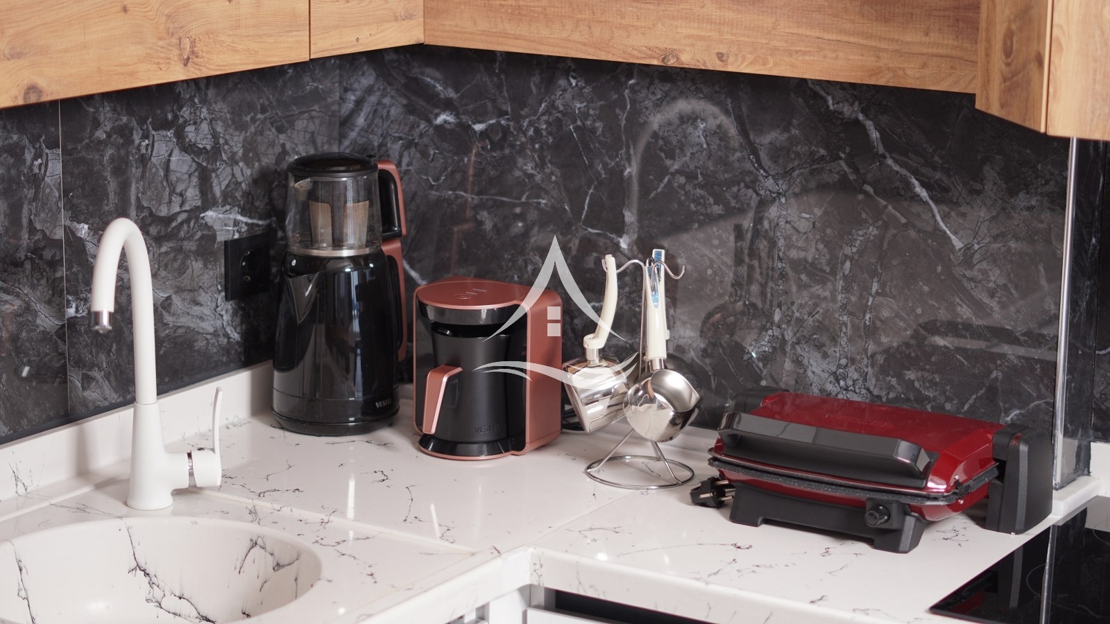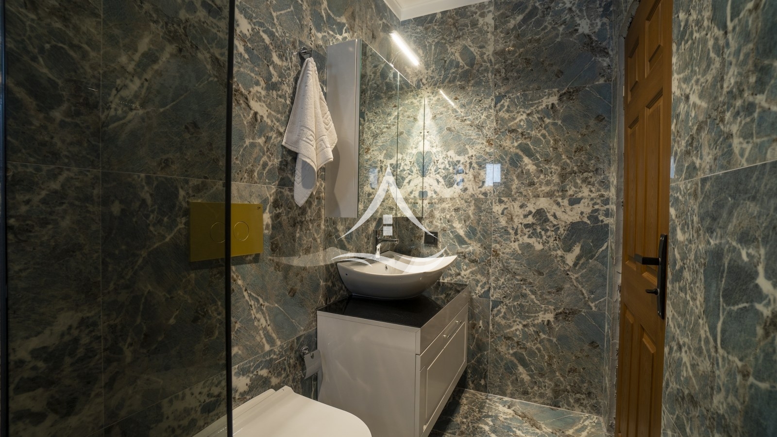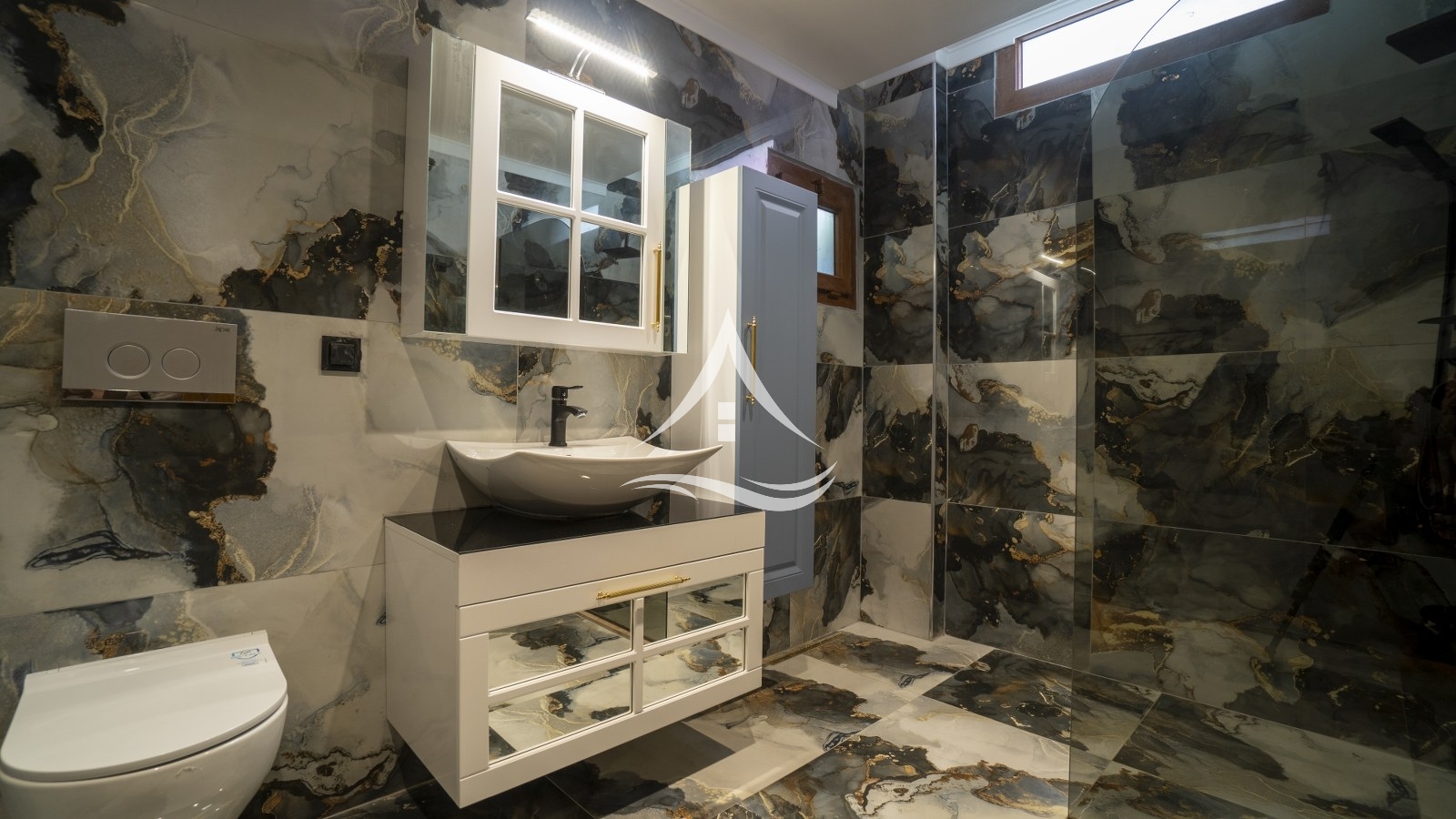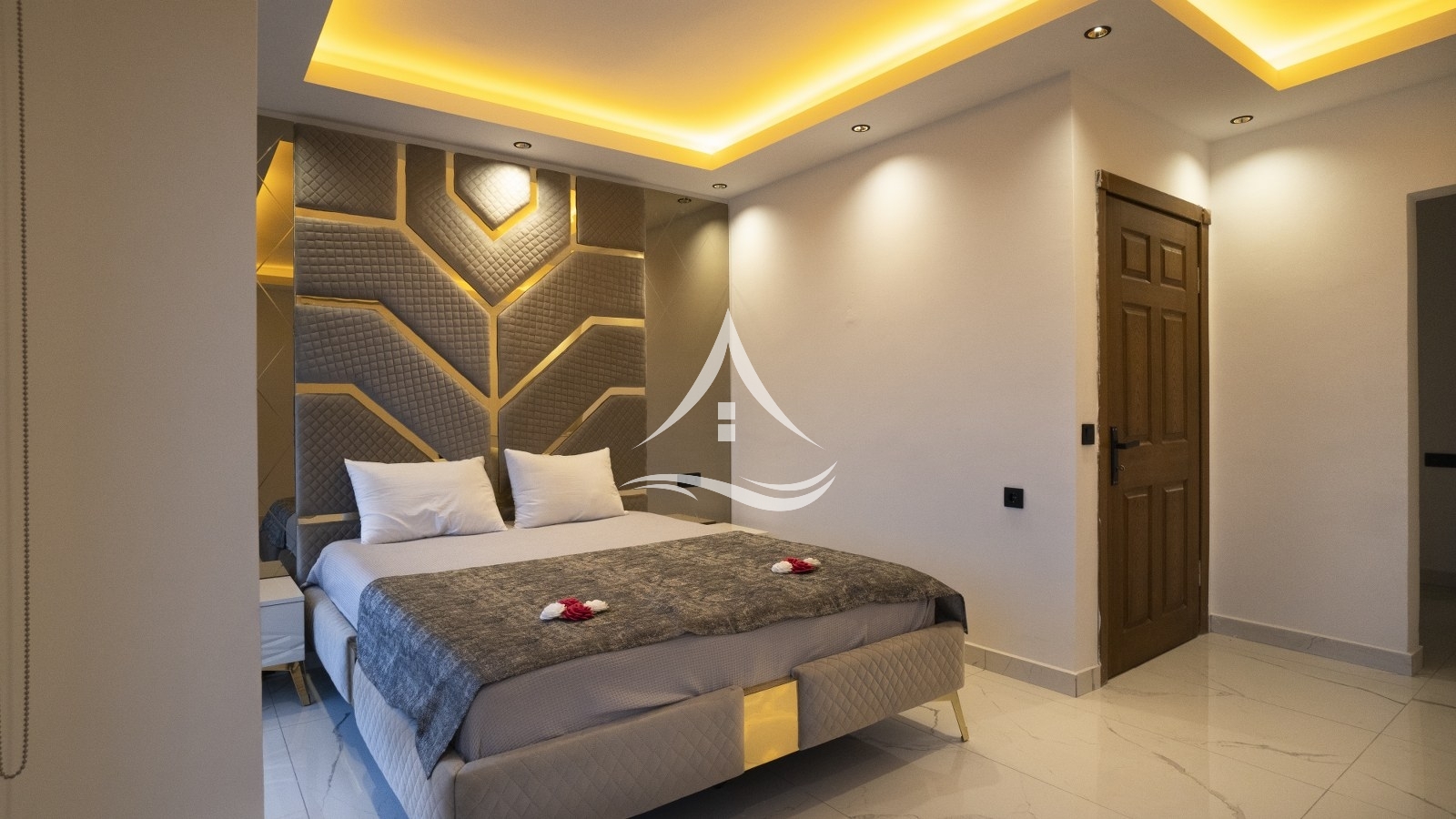 1. Yatak Odası :  1 Adet Çift Kişilik Yatak, Ebeveyn Banyo, Komodin, Elbise Dolabı, Makyaj Masası, Klima