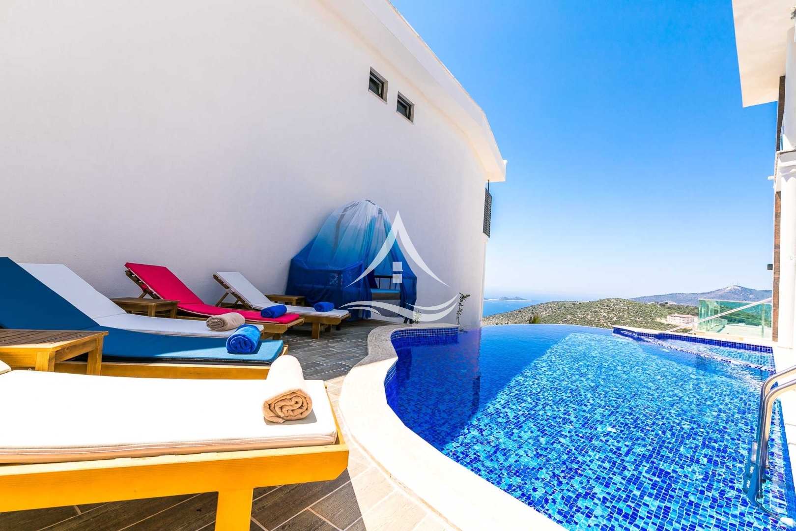 Kalkan Akbel mevkiinde bulunan Villa Excellece göz alıcı Patara ve Kalkan manzarası ile misafirlerinin beğenisini kazanmaktadır. 5 yatak odalı tatil evimiz 10 kişiye kadar yapılacak konaklamalar için uygun kapasiteye sahiptir. Üst ve alt katta olmak üzere 2 adet havuzu bulunan tatil evimizin havuz terasları korunaklıdır.
