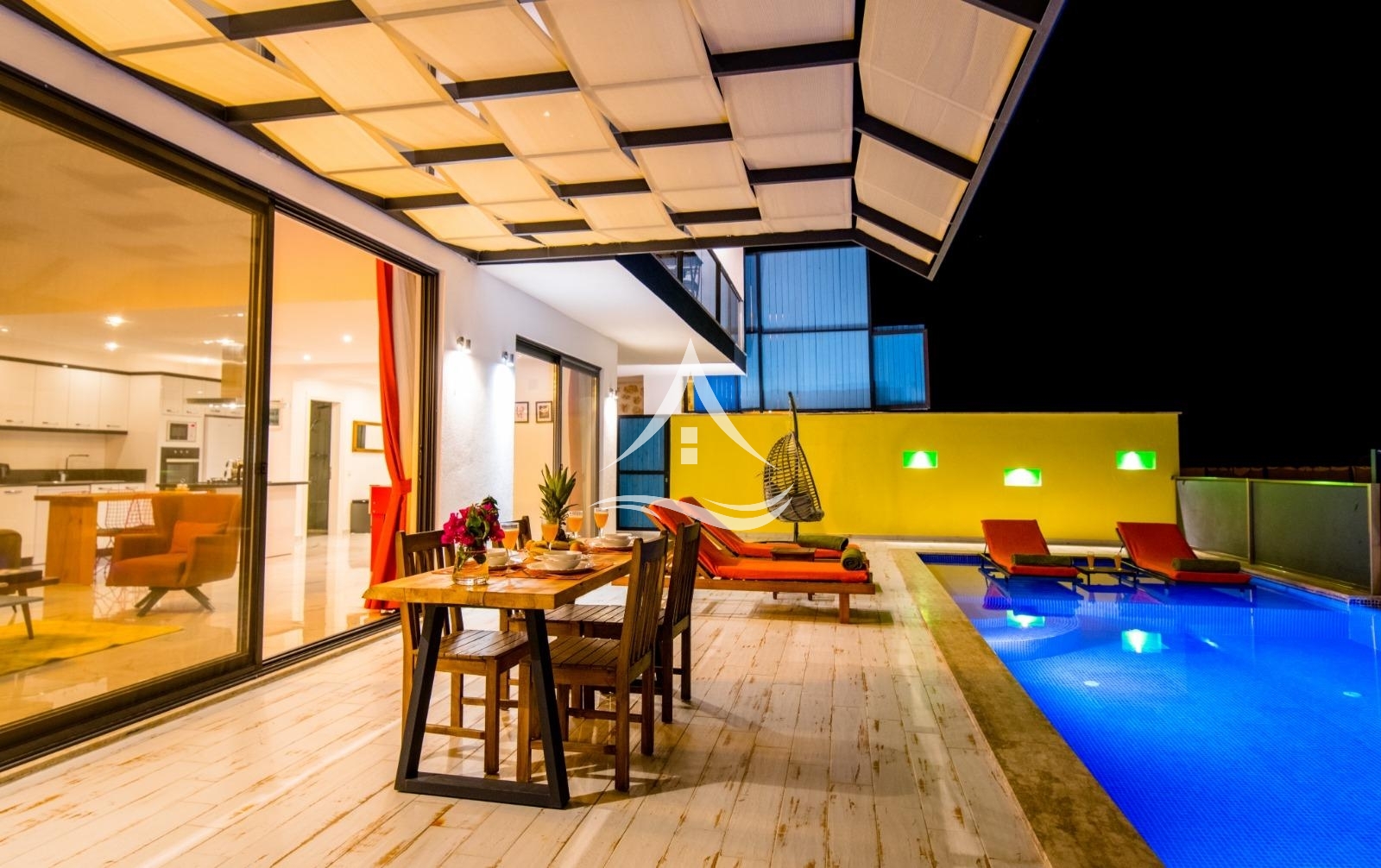 Villa Gala ısıtmalı kapalı havuzu sayesinde her mevsim tatil yapma imkanı sunmaktadır. Modern ve konforlu dizaynı ile misafirlerinden tam not almaktadır. Uzaktan panoramik deniz manzarası ile misafirlerine muhteşem bir seyir zevki sunuyor. Akdeniz'in mavilikleri sizin tarafınızdan keşfedilmeyi bekliyor. 01 Kasım -01 Mayıs tarihleri arasında kapalı havuz ısıtması ücrete dahildir. Diğer tarihlerde ısıtma ücreti günlük 1000 TL ekstra olarak alınacaktır. Kapalı havuz ısıtması maksimum 23-27 dereceye kadar çıkabilmektedir.