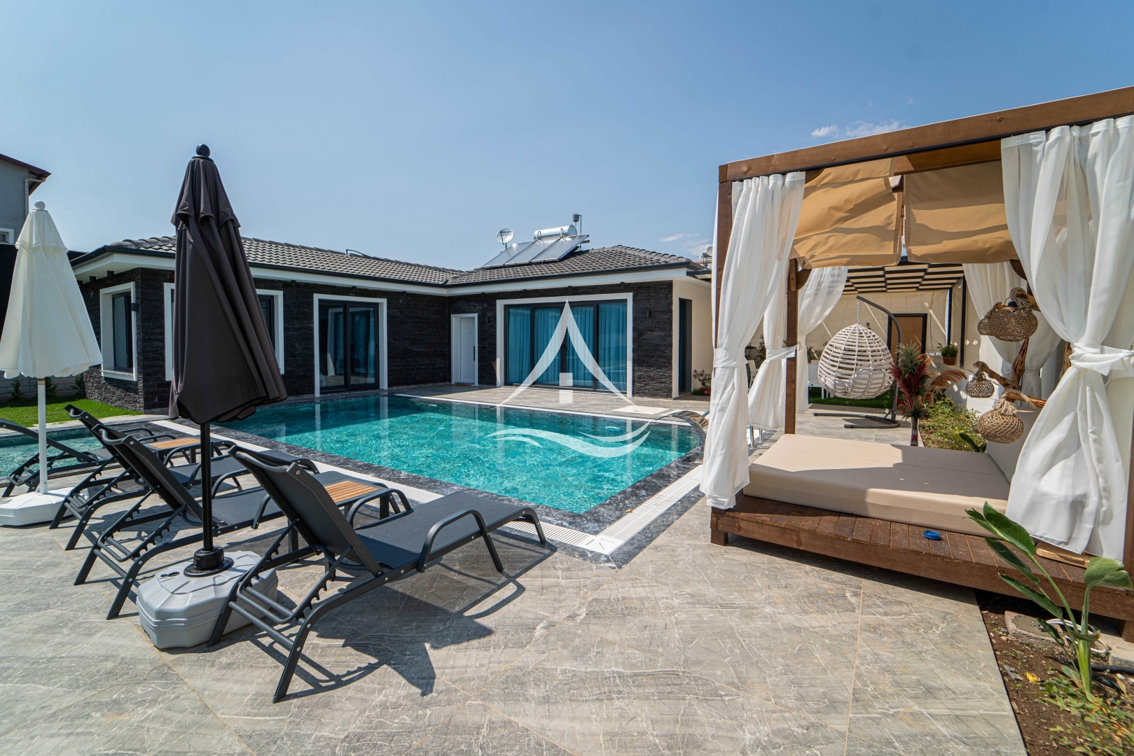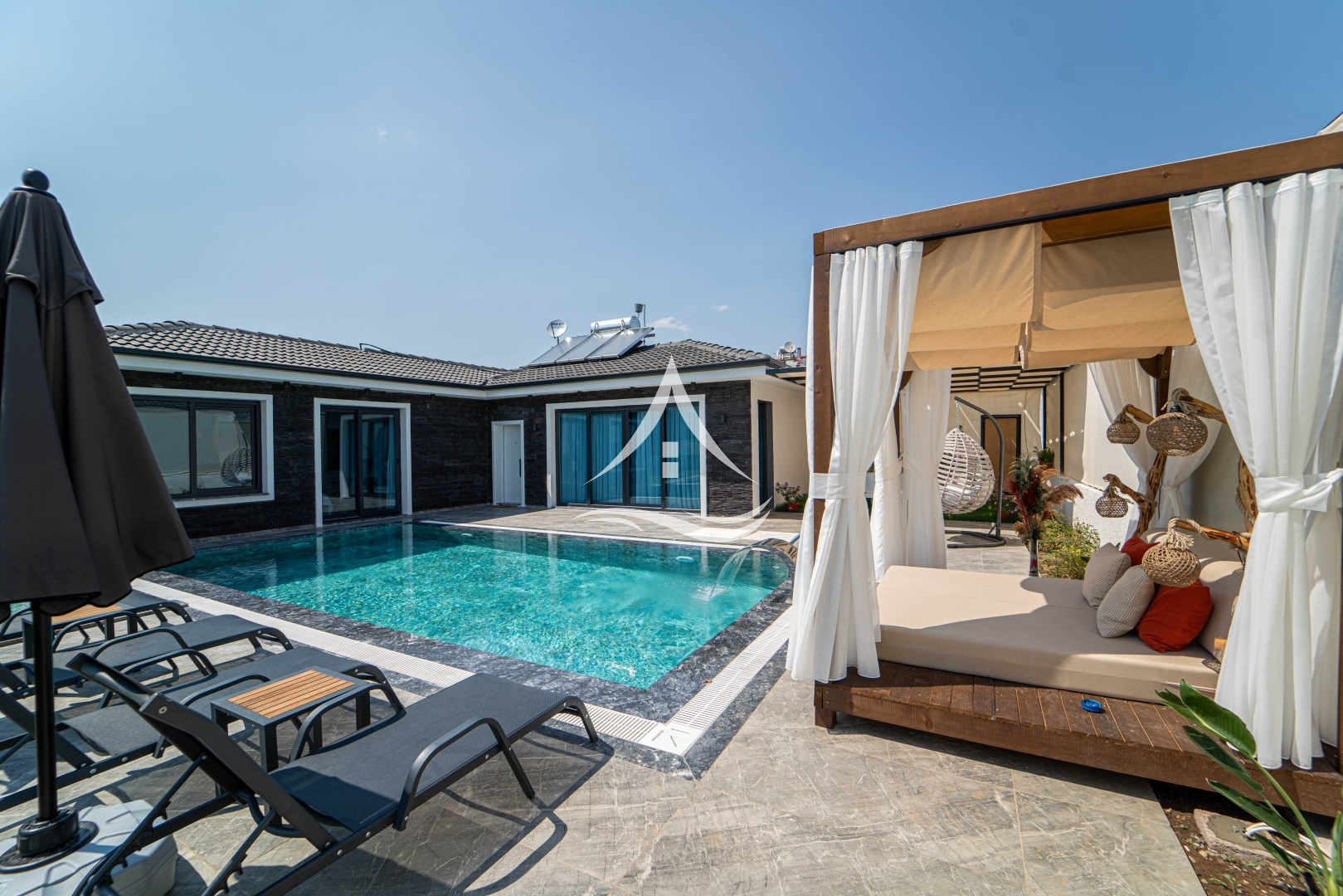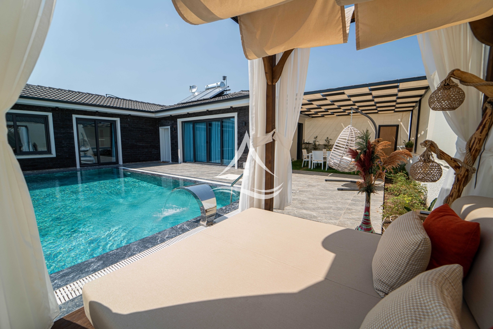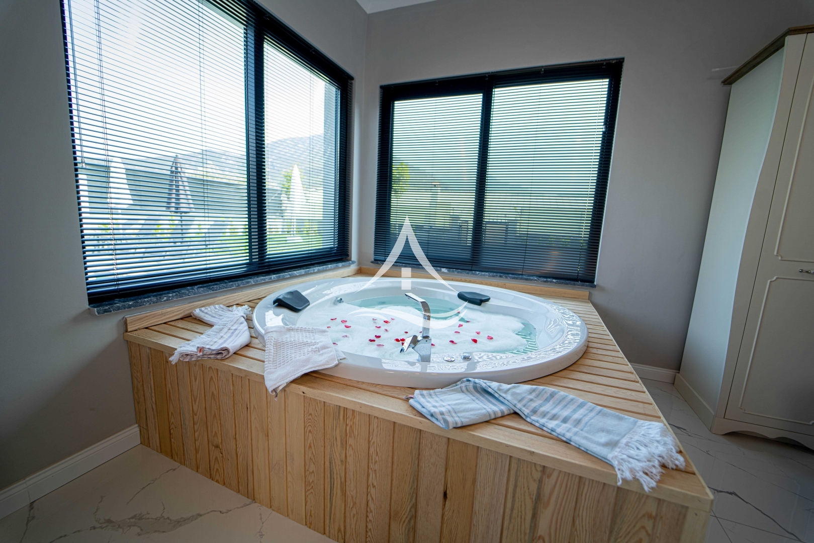 1. Yatak Odası : 1 Adet Çift Kişilik Yatak, Klima, Ebeveyn Banyo, Jakuzi, Havuz Terasına Çıkış