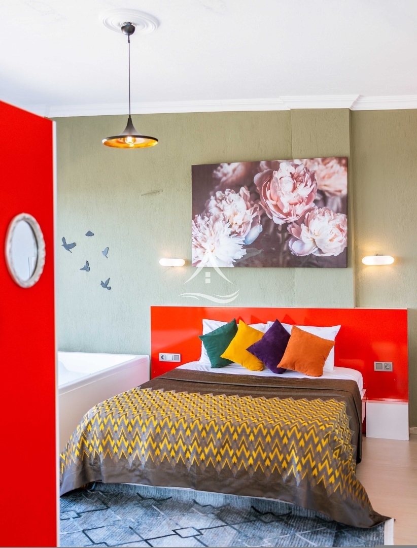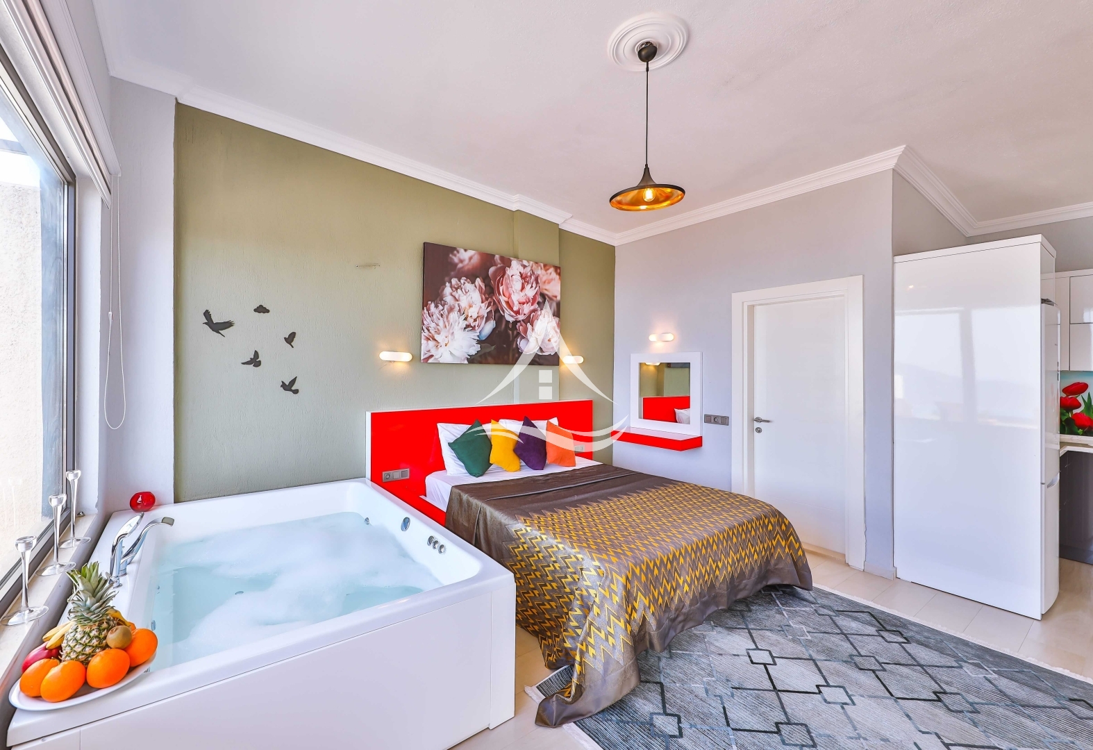 1. Yatak Odası : 1 Adet Çift Kişilik Yatak, Klima, Ebeveyn Banyo, Jakuzi