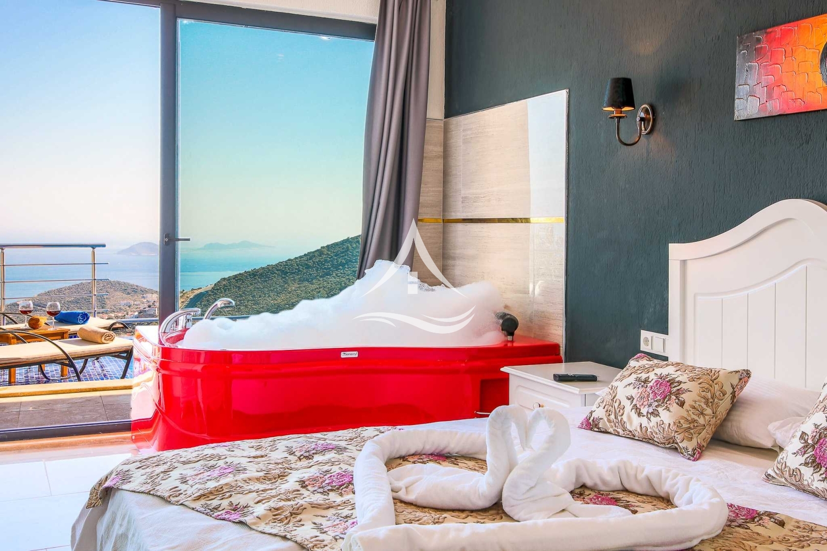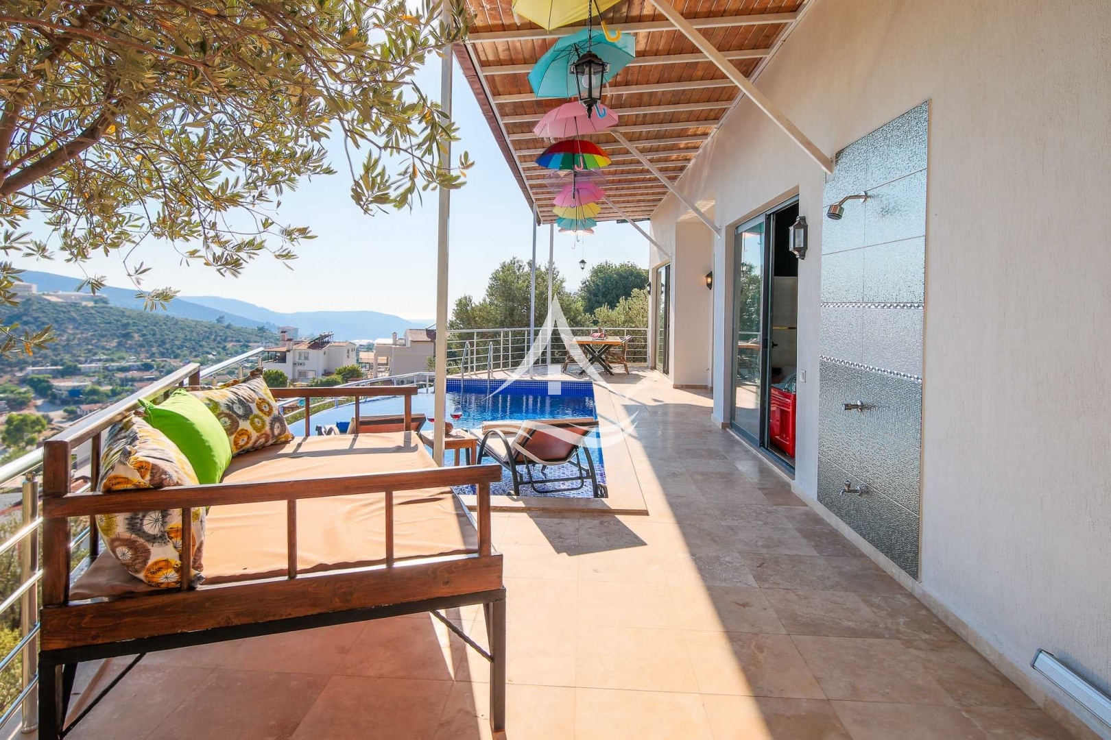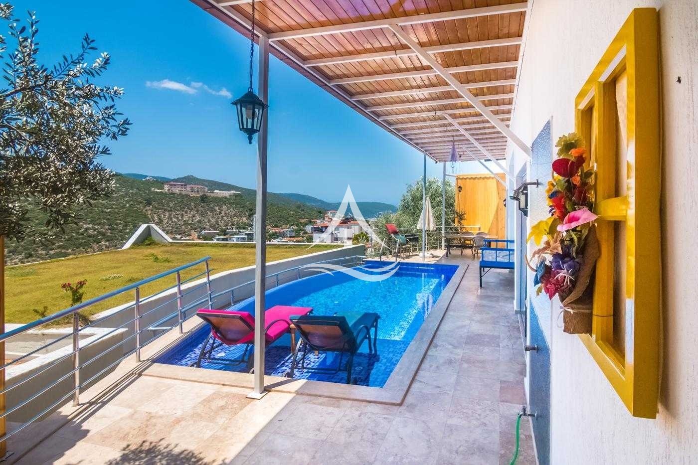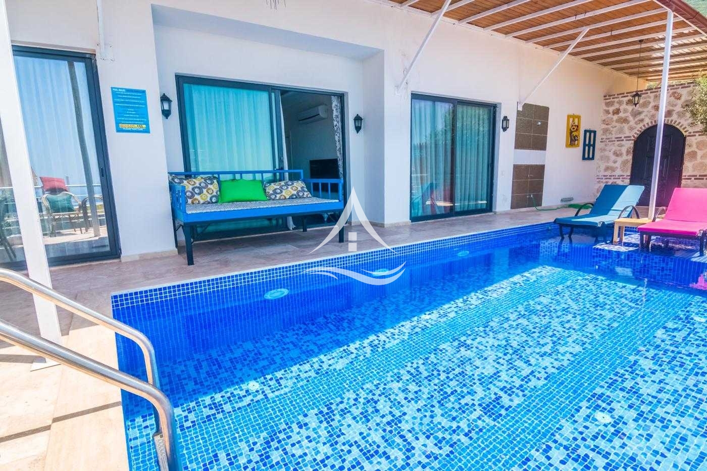 Kalkan'ın merkeze yakın konumlarından Akbel mevkiinde yer alan Villa gelincik çekirdek aileler ve balayı çiftleri için uygundur. Ebeveyn banyolu ve jakuzili yatak odasından havuz terasına çıkış bulunmaktadır. Havuz terası korunaklı konsepte uygundur.