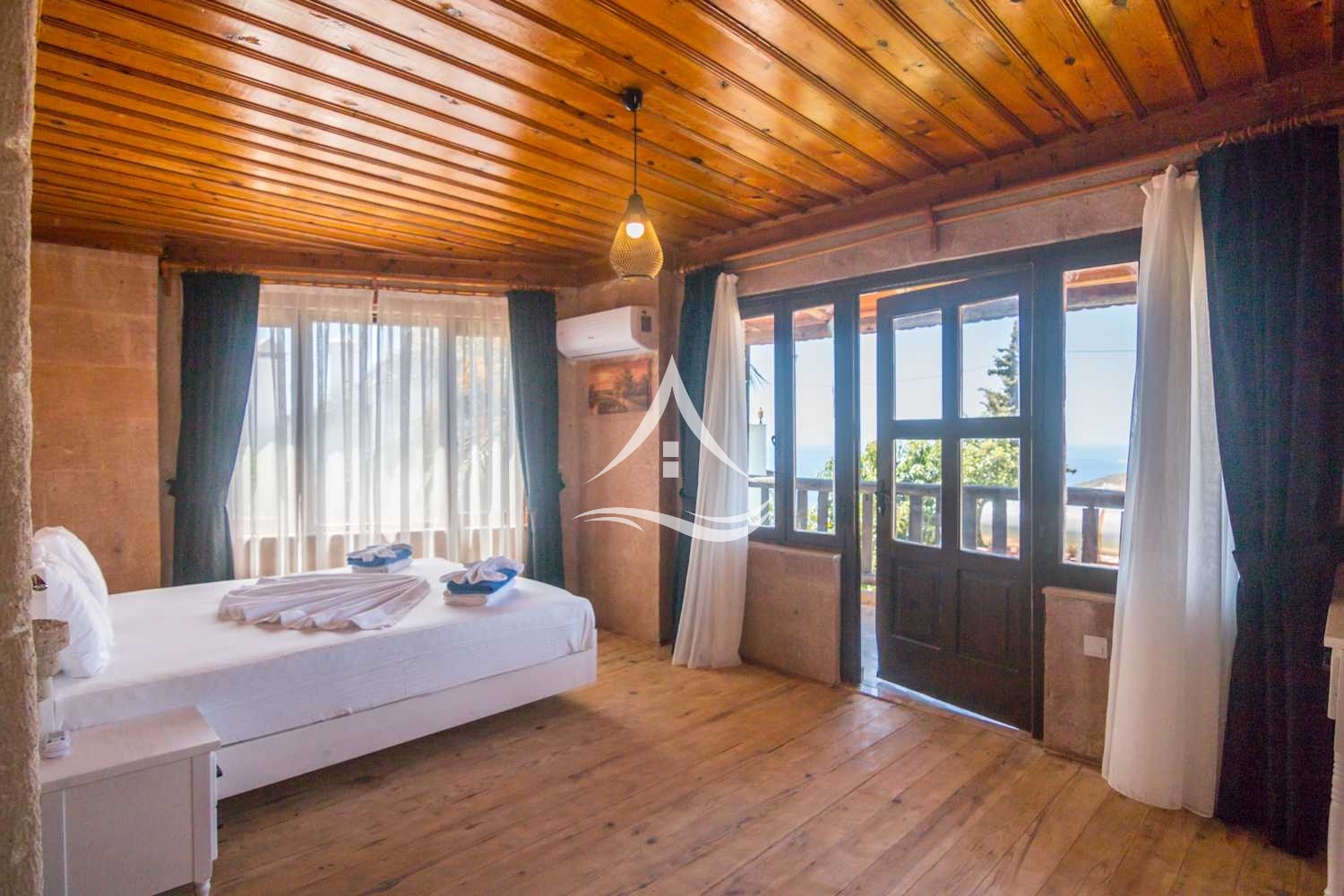 1. Yatak Odası : 1 Adet Çift Kişilik Yatak, Klima, Ortak Kullanım Banyo