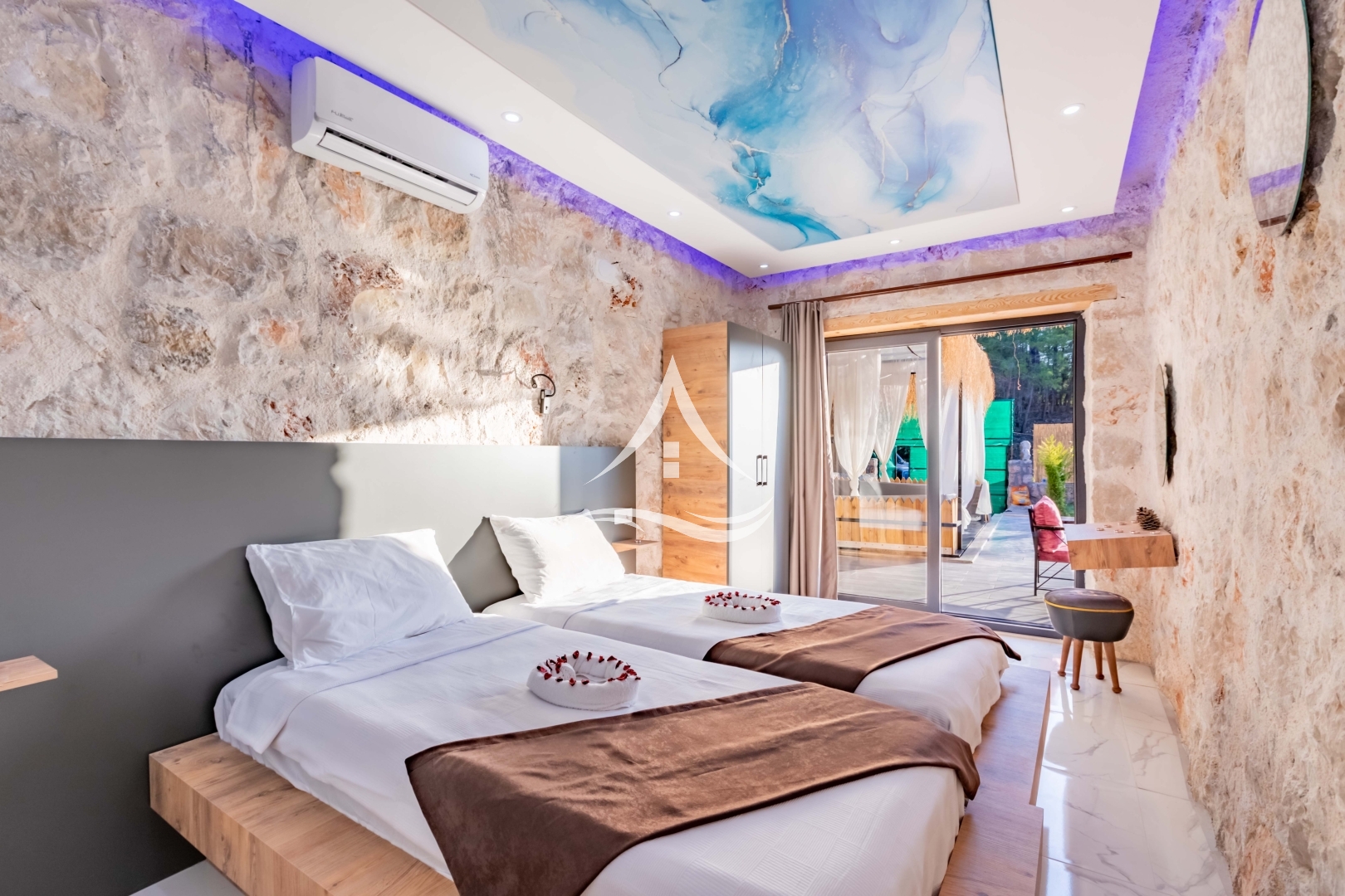 2. Yatak Odası : 2 Adet Tek Kişilik Yatak, Klima, Elbise Dolabı, Makyaj Masası, Ebeveyn Banyo