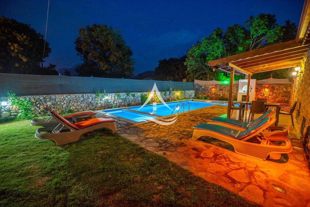 Sakin atmosferi, temiz havası ve doğası ile misafirlerinin beğenisini kazanan Villa Jolly, Fethiye Kayaköy mevkiinde yer almaktadır. 2 yatak odalı tatil evimiz 4 kişiye kadar yapılacak konaklamalar için uygun kapasiteye sahiptir. Havuz ve bahçe alanı dışarıdan görülmeyecek şekilde tasarlanmıştır. Tam korunaklı konsepte uygundur.