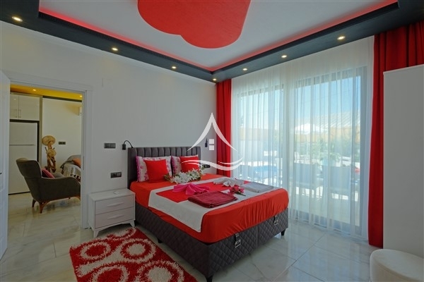 1. Yatak Odası : 1 Adet Çift Kişilik Yatak, Klima, Komodin, Ebeveyn Banyo
