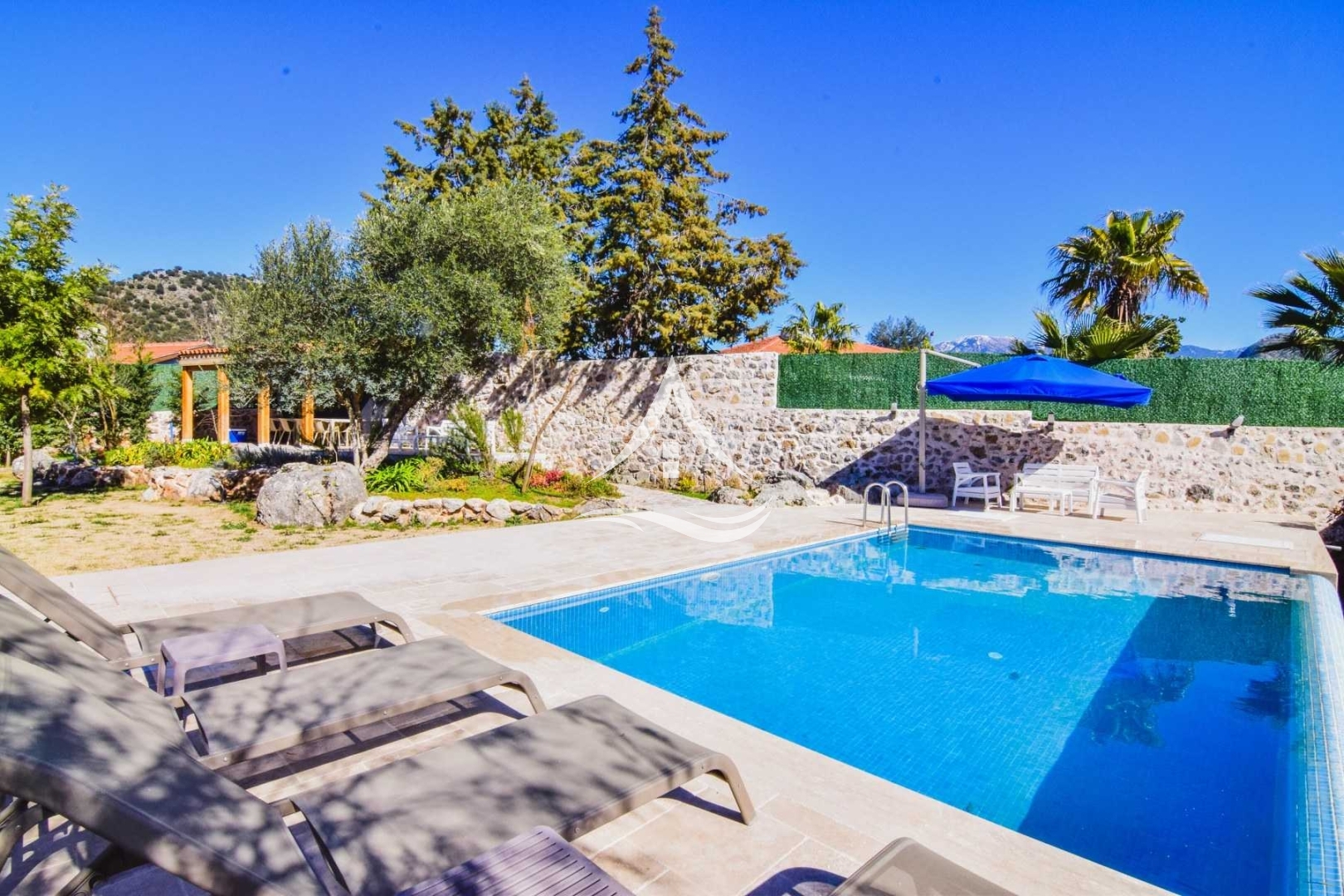 4 Kişiye kadar yapılacak konaklamalar için uygun kapasiteye sahip Villa Kaya Kınalı Fethiye Kayaköy mevkiinde yer almaktadır. 1000 metrekare arsa içerisine inşaa edilmiş 2 yapıdan oluşan villamızda her binada 1 yatak odası olacak şekilde toplam 2 oda bulunmaktadır. Geniş bahçe ve havuz terası dışarıdan hiçbir şekilde görülmediği için tam korunaklı konsepte uygundur.