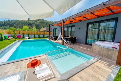Villa Kelebek, son zamanlarda villa tatili için tercih edilen bölgelerden bir tanesi olan Fethiye Seydikemer mevkiinde yer almaktadır. 2 yatak odalı tatil evimiz 4 kişilik konaklama kapasitesine sahiptir. Villamız 16 adet birbirinden bağımsız inşaa edilmiş büyük bir kompleks içerisinde yer alıyor. Jakuzili Villa Kelebek ve bu alan içerisinde yer alan diğer bütün bütün villalarımız korunaklı konsepte oldukça uygun. Villamızda çocuk havuzu bulunmaktadır.