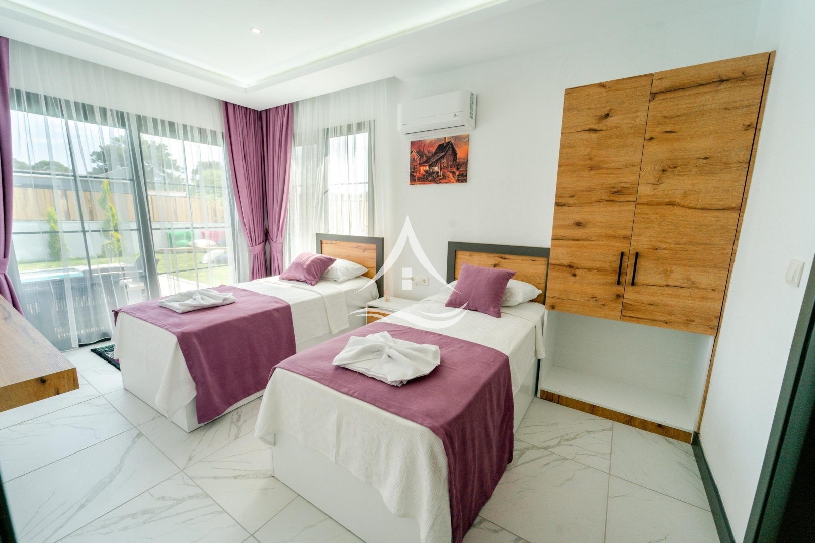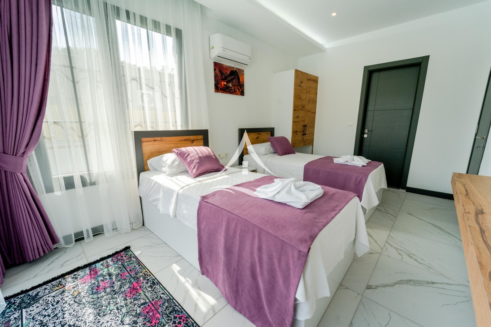 2. Yatak Odası : 2 Adet Tek Kişilik Yatak, Komodin, Elbise Dolabı, Makyaj Masası, Klima, Ortak Kullanım Banyo