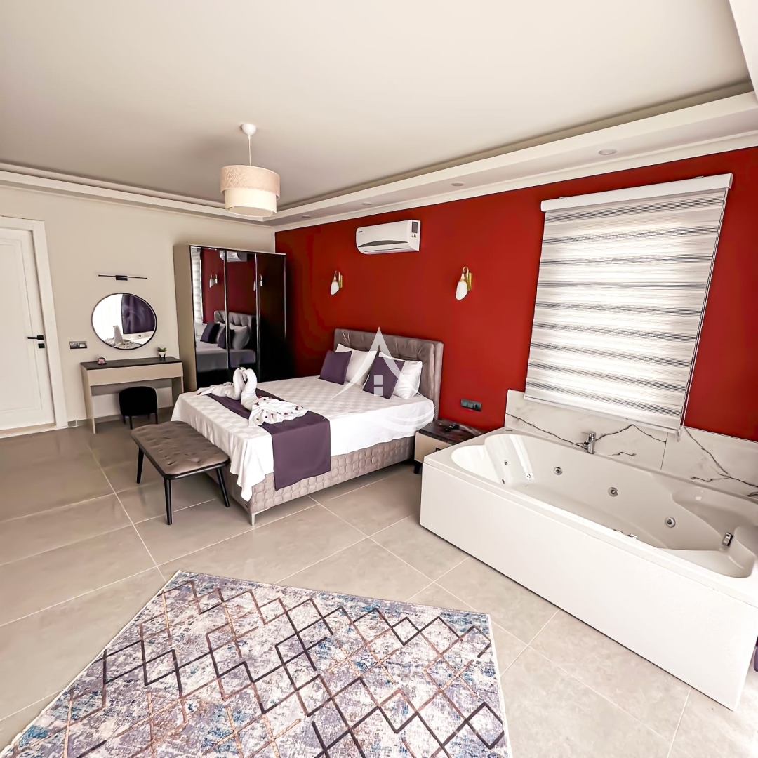 1. Yatak Odası : 1 Adet Çift Kişilik Yatak, Klima, Komodin , Elbise Dolabı, Makyaj Masası, TV, Ebeveyn Banyo ,Jakuzi