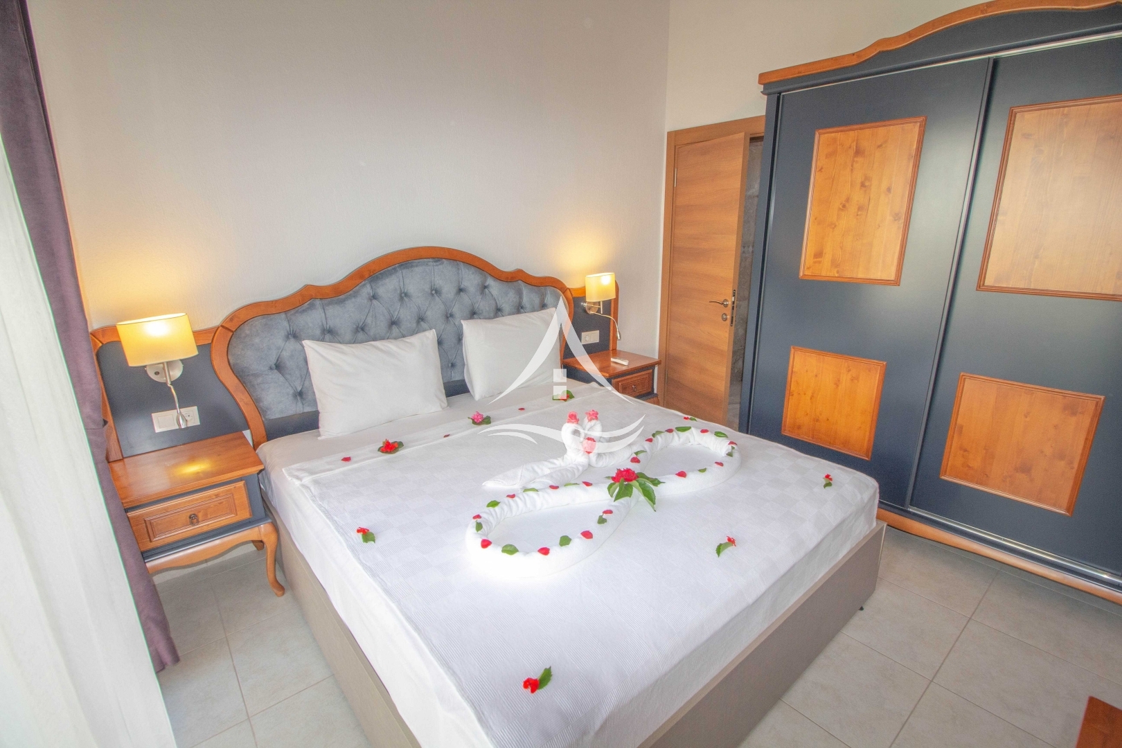 1.Yatak Odası : 1 Adet Çift Kişilik Yatak, Jakuzi, Ebeveyn Banyosu, Komodin, Makyaj Masası ve Gardrop