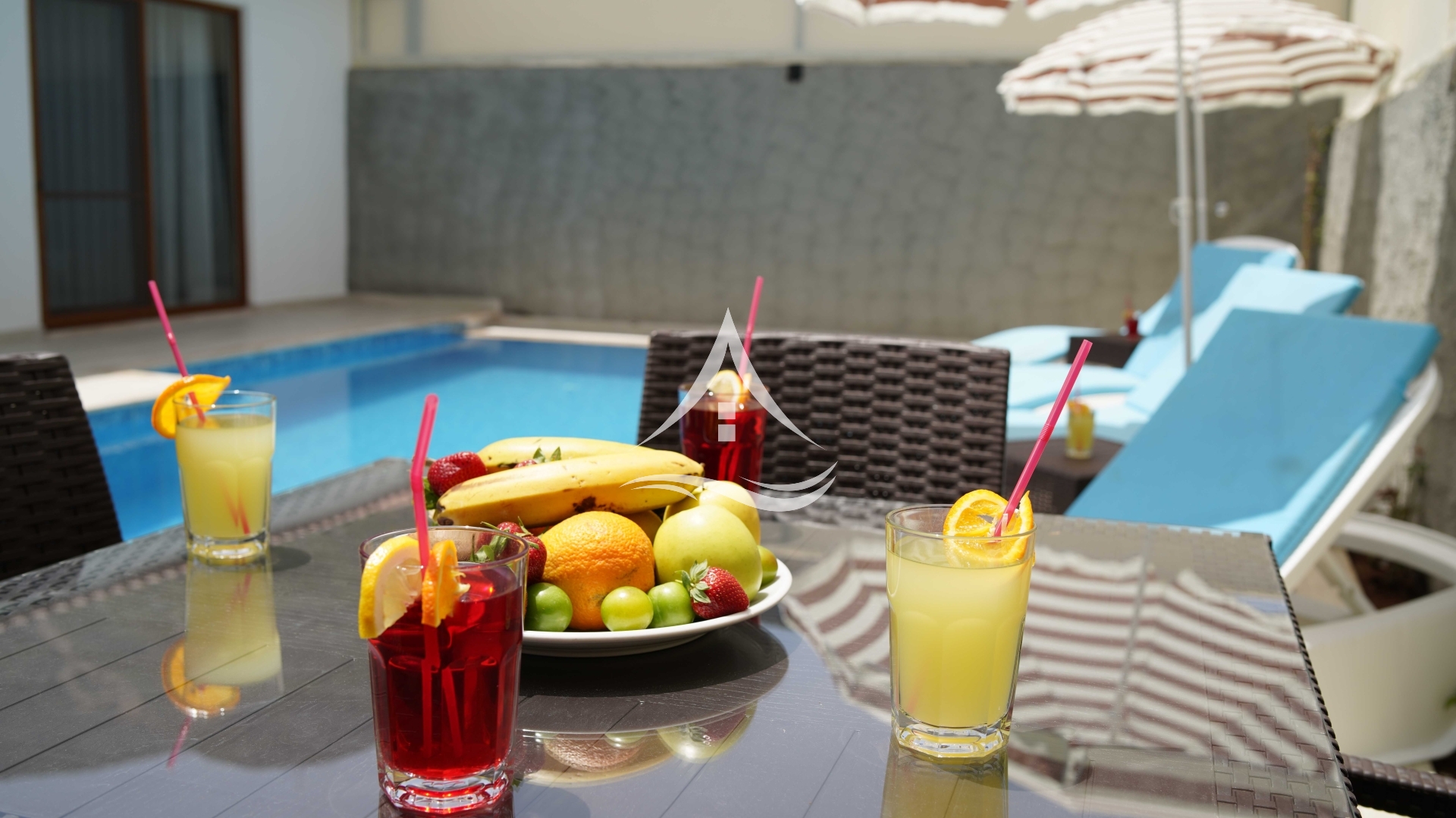 2. Yatak Odası : 2 Adet Tek Kişilik Yatak, Gardrop, Komodin, Banyo (salonla ortak) ve havuz terasına geçiş imkanı
