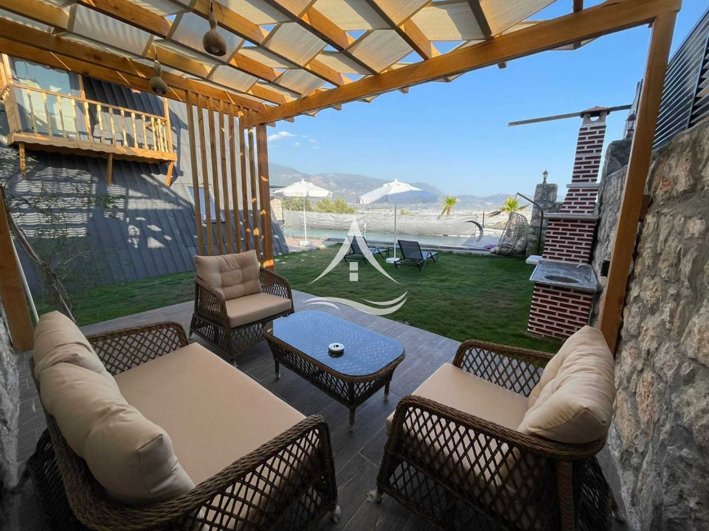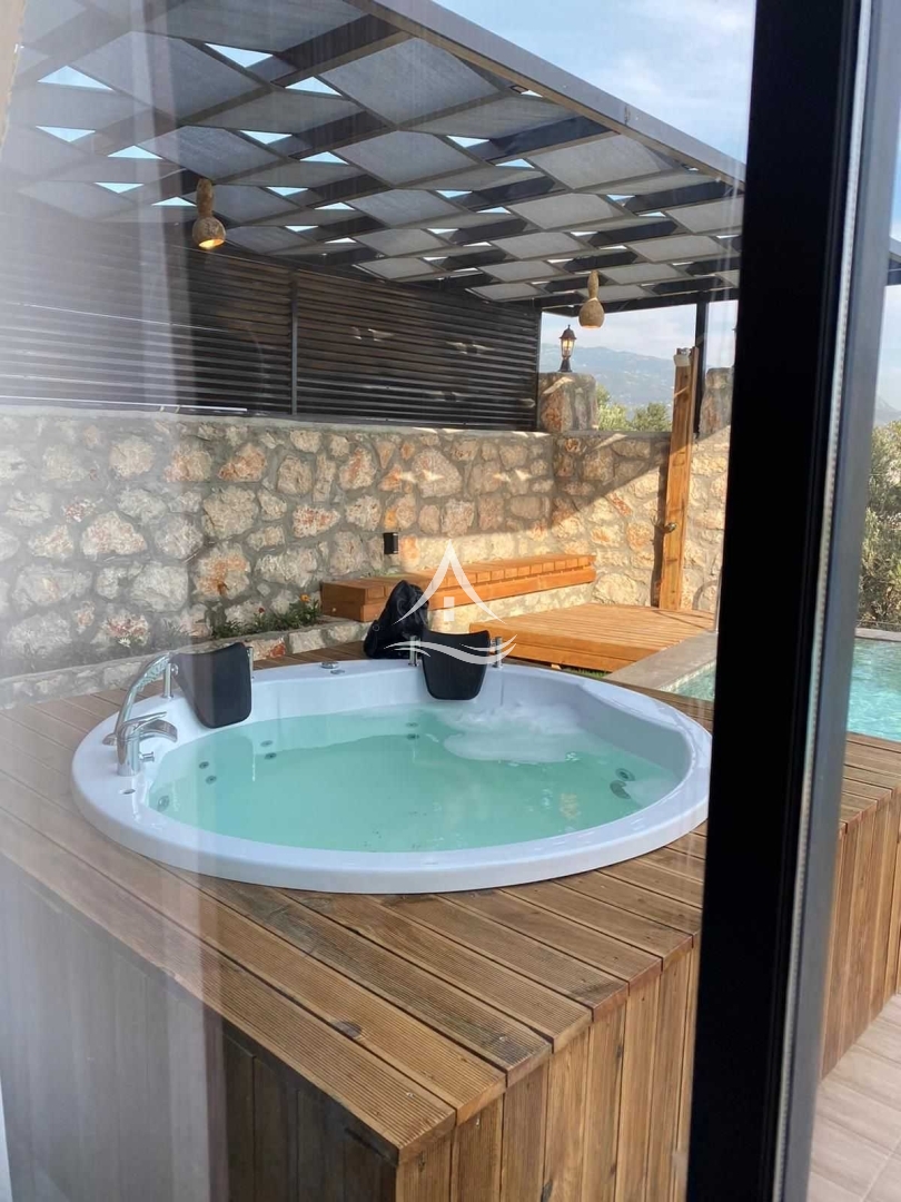 Büyük şehir kalabalığından uzak sakin bir tatil süreci geçirebileceğiniz Villa lila, Kalkan Kınık bölgesinde yer almaktadır. 2 Yatak odası bulunan villamız 4 kişiye kadar yapılacak konaklamalar için uygun kapasiteye sahiptir. Salonda bulunan büyük klima ısıtma ve soğutma özellikleri ile villamızın tamamına etki etmektedir. Havuz ve bahçe alanı dışarıdan görülmeyecek şekilde dizayn edilmiştir. Korunaklı konsepte uygundur. Havuz terasında bahçe oturma grubu ve jakuzi bulunmaktadır.