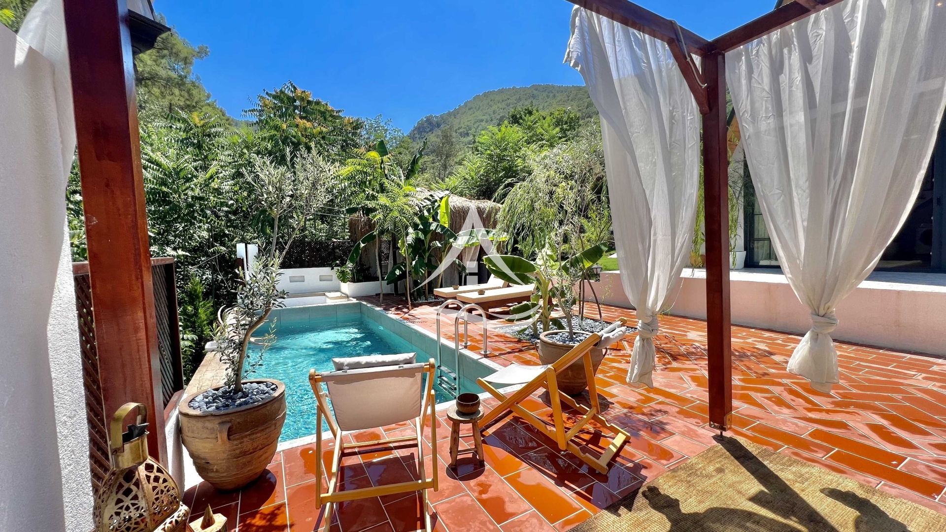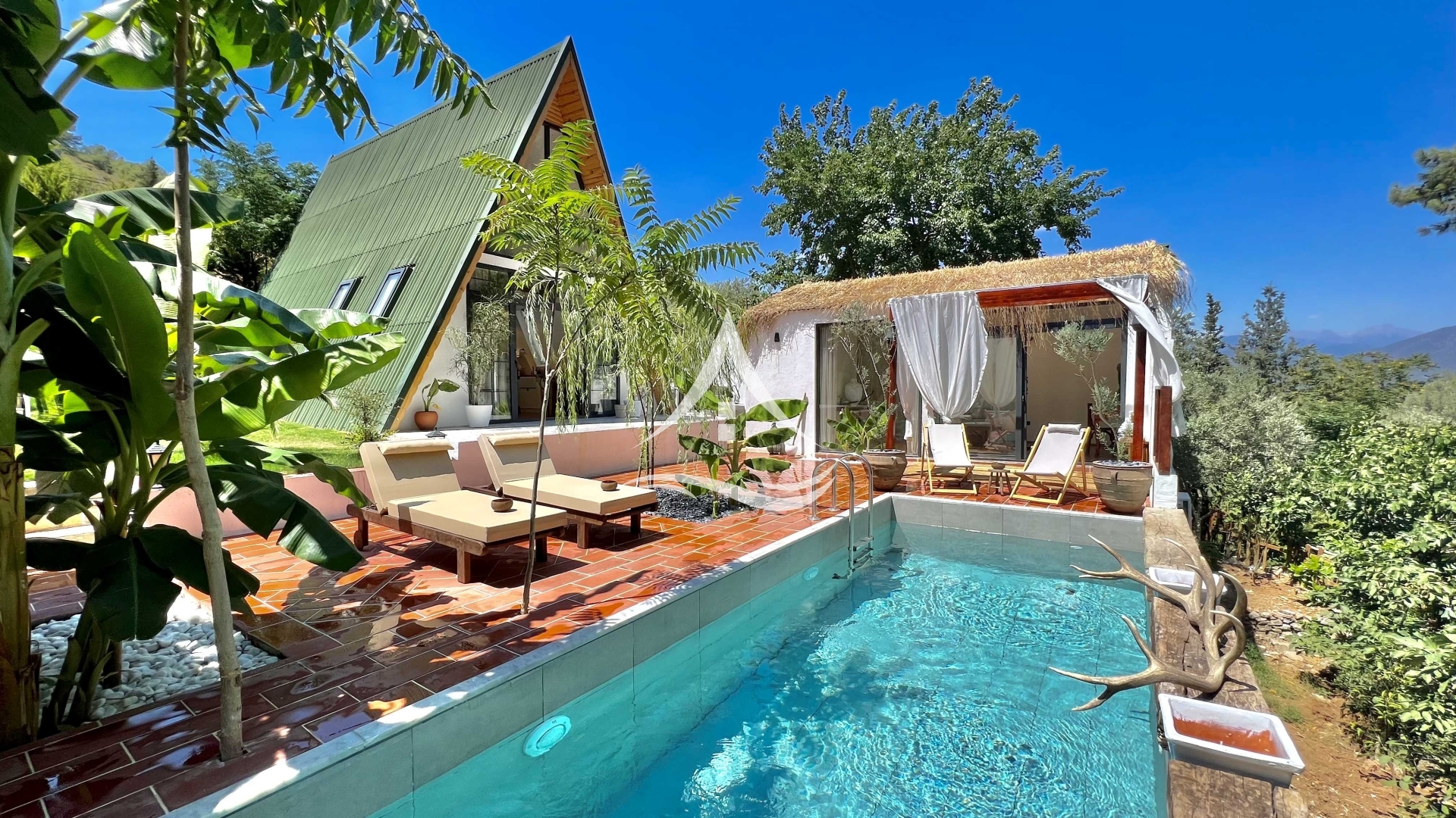 Fethiye şehir merkezinde bulunan Villa Maison 4 kişilik konaklama kapasitesine sahiptir. Merkezi lokasyonu şehir merkezi, restaurant, market gibi ihtiyaçlarınızı karşılayabileceğiniz bir çok alana kolay erişim imkanı sunmaktadır. Doğa içerisinde bulunan Villa Maison havuz ve bahçe alanının dışarıdan görünmemesi nedeniyle korunaklı konsepte uygundur.