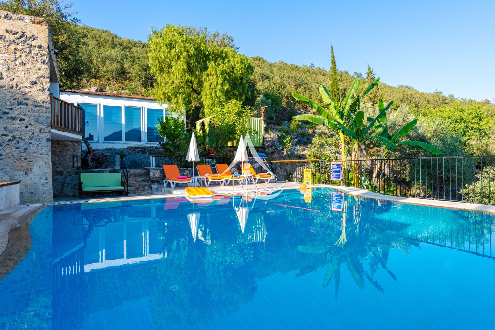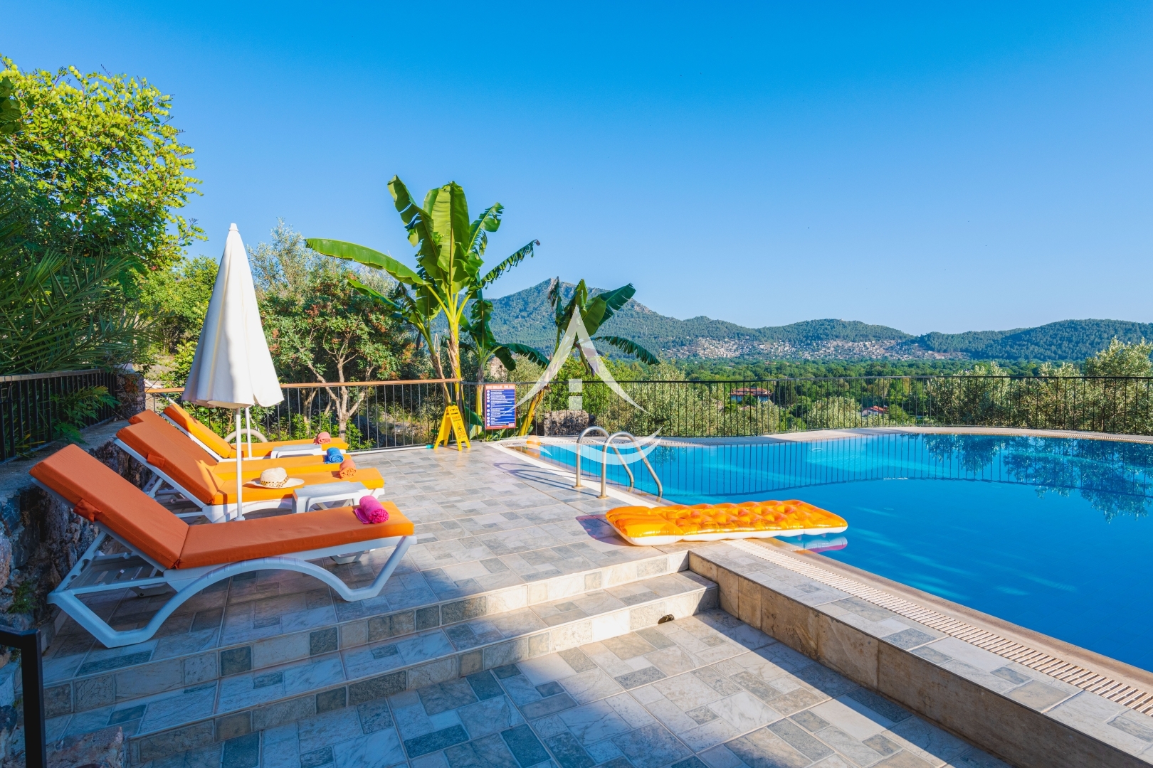 Villa Manzara geniş havuz terası ile tatilini havuz başında geçirmek isteyen misafirlerimiz için ideal bir seçimdir. Kayaköy bölgesinin sokaklarında tarihe yolculuk edebilir Ölüdeniz Plajında yaz sıcaklarında serinleyebilirsiniz. Geniş havuz terasına sahip olan villada aileniz ile muhteşem gün batımlarına tanıklık edebilir , eğlenmenin ve temiz havanın tadını çıkarabilirsiniz. Havuz başında bulunan jakuzisi sayesinde tatiliniz daha kaliteli hale gelecektir.