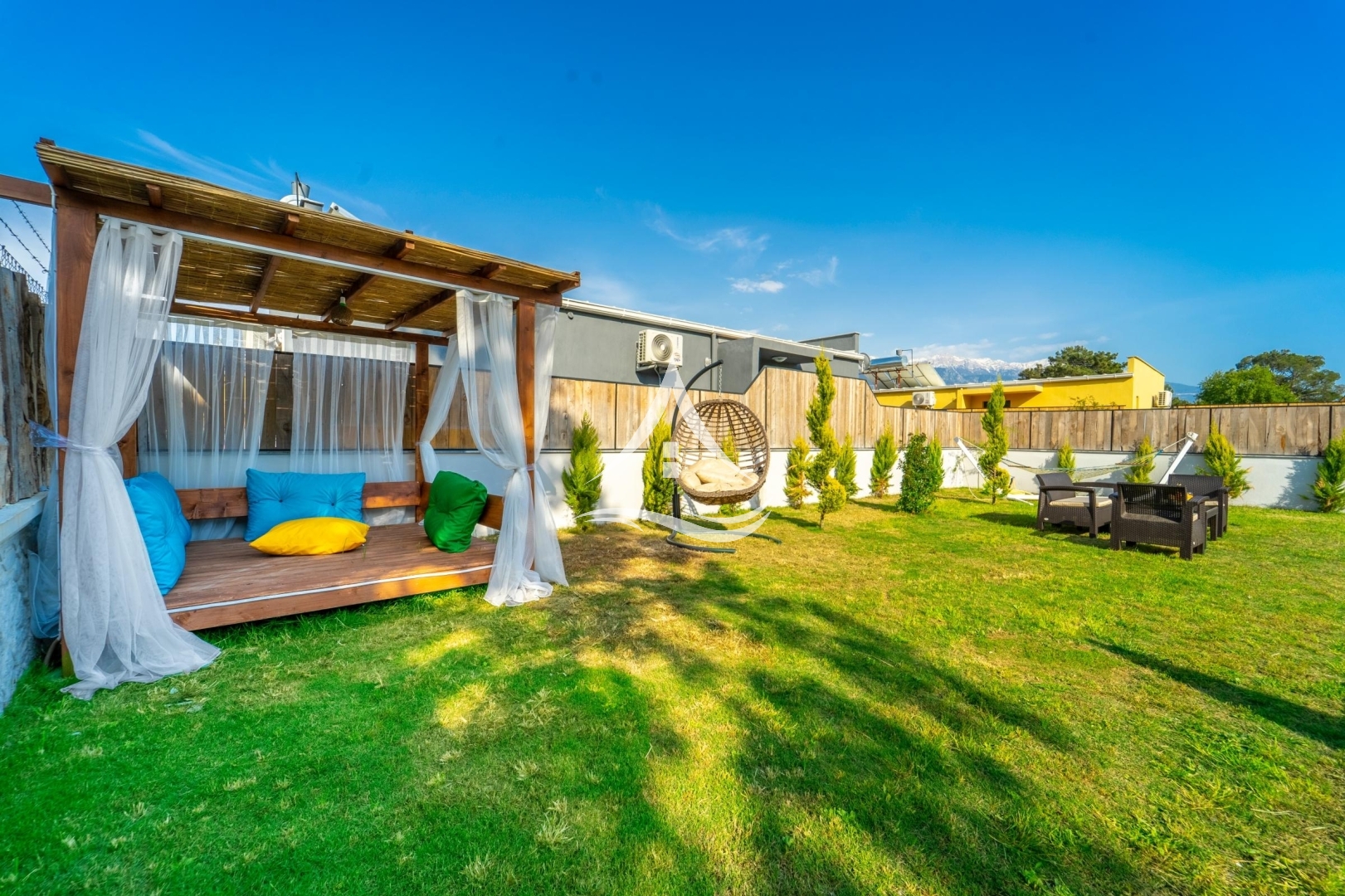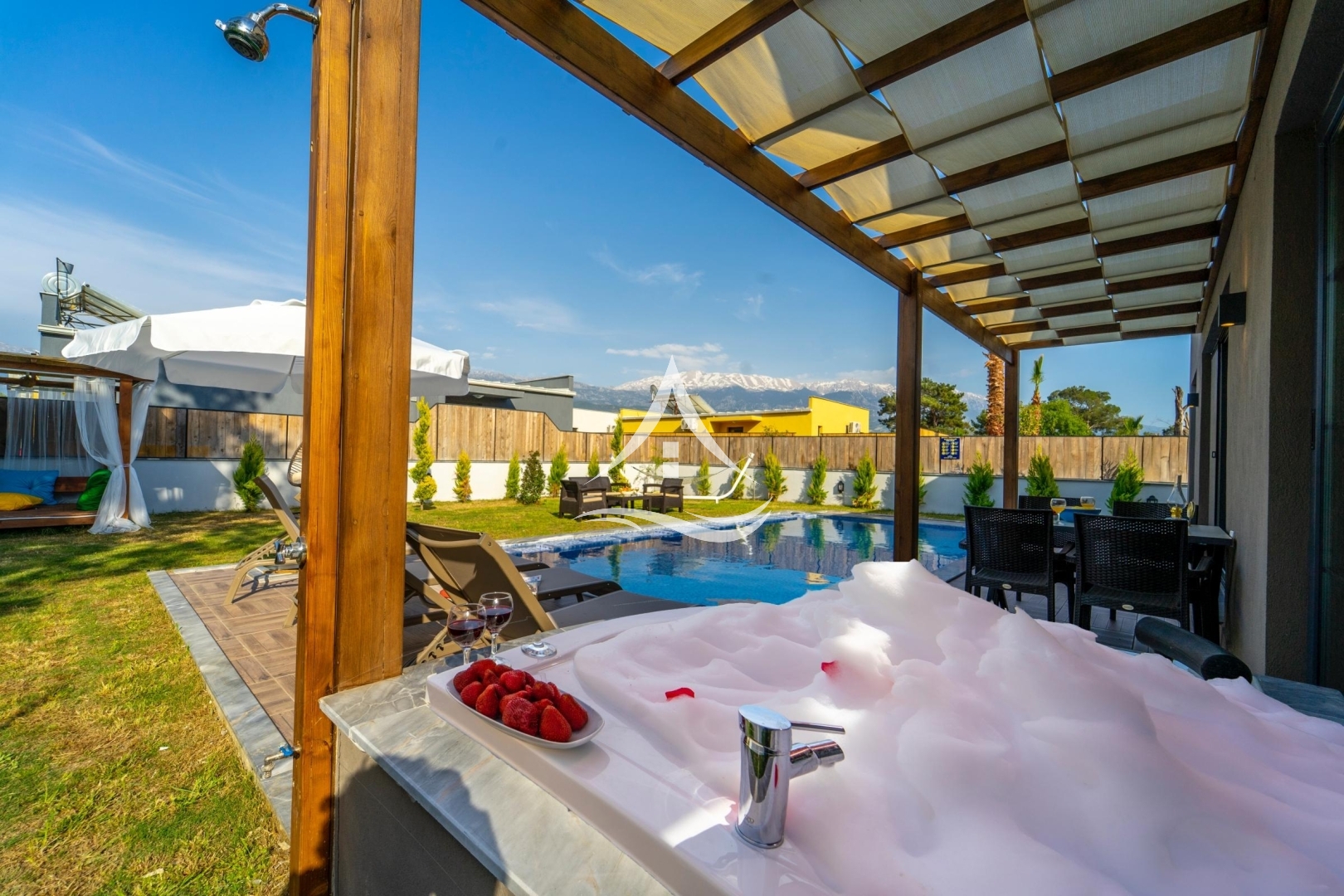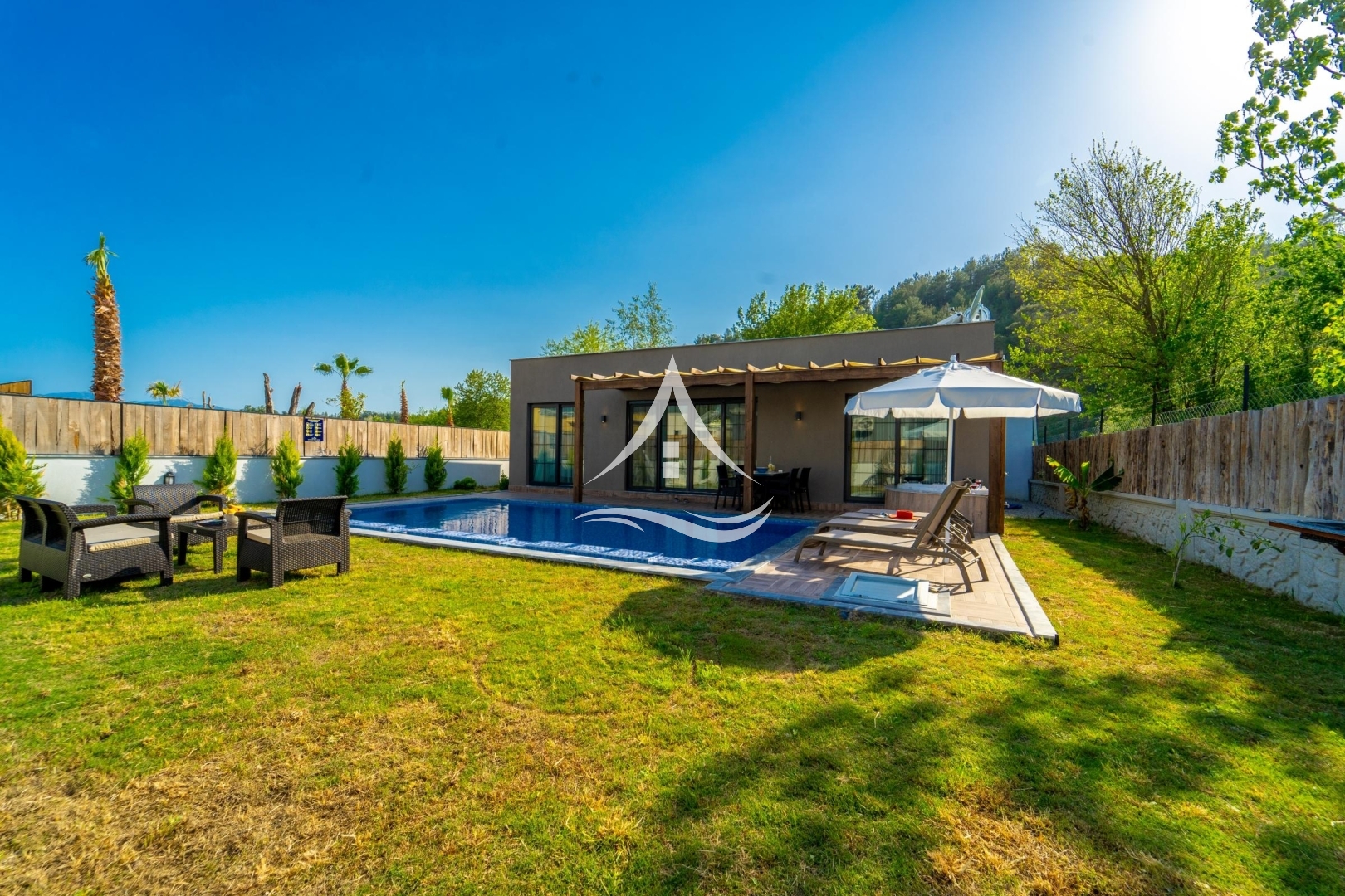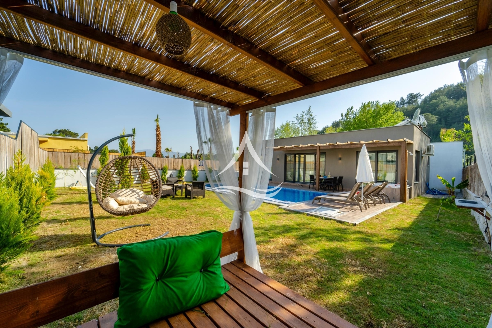 Doğa içerisinde aileniz ve sevdiklerinizle tatil yapmanız için keyifli bir seçenek olan Jakuzili Villa Meğri, Fethiye Seydikemer bölgesinde yer alıyor. 2 yatak odalı villamız 4 kişiye kadar yapılacak konaklamalar için uygun kapasiteye sahip. Eğer 4 kişi üzerinde konaklama talebiniz var ise, danışmanımızdan hemen yanında yer alan diğer villalar konusunda bilgi alabilirsiniz. Villamız aynı alan içerisinde birbirinden bağımsız özel havuz ve bahçe alanına sahip 16 villadan bir tanesi. Bu alan içerisinde yer alan diğer bütün villalar gibi Villa Meğri korunaklı konsepte oldukça uygun. Kompleks içerisinde ortak alanda çocuk oyun parkı, otopark, semaver alanı gibi detaylar bulunuyor.
