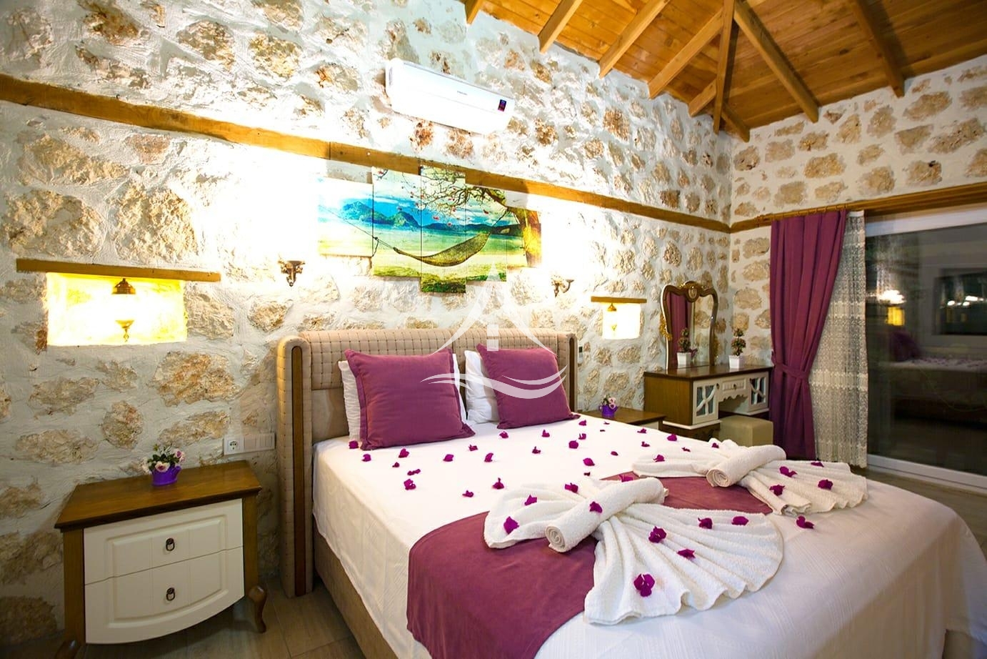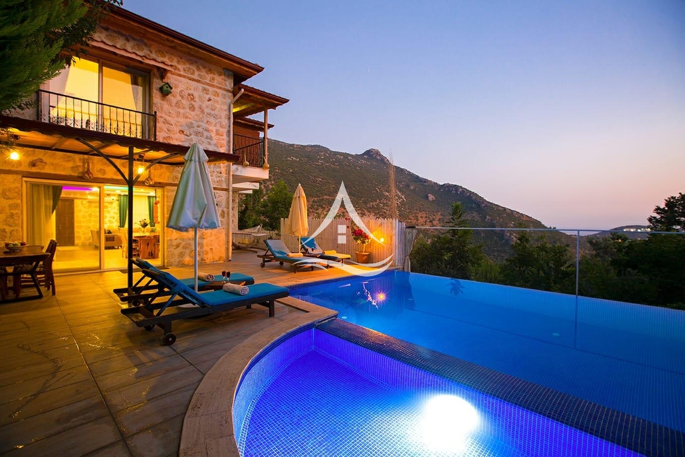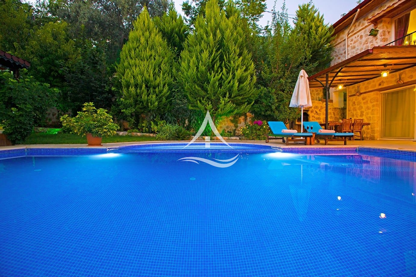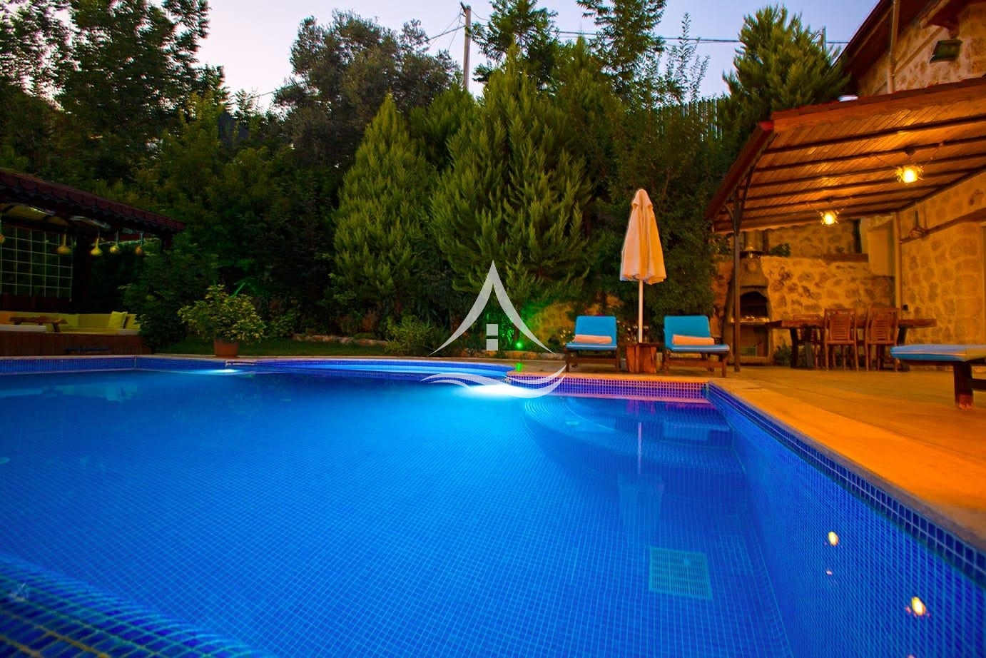 Villa Mercan taş ve ahşap tasarımın bir araya gelmesi ile otantik bir görünüme sahip olmuştur. Havuz ve bahçe ışıklandırması ile villada geçireceğiniz süre daha kaliteli bir hale getirilmiştir. Yaz akşamlarını yemyeşil ağaçlarla çevrili bahçede geçirebilirsiniz. Misafirleri için ihtiyaç duyulan her şey en ince ayrıntısına kadar düşünülmüştür. Şehir hayatından uzaklaşıp dinlendirici bir tatil geçirebilirsiniz.