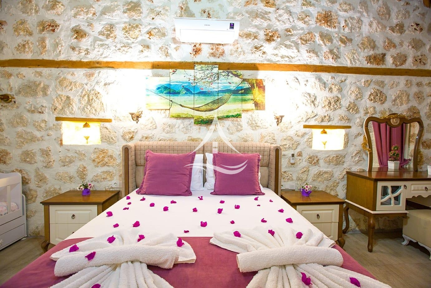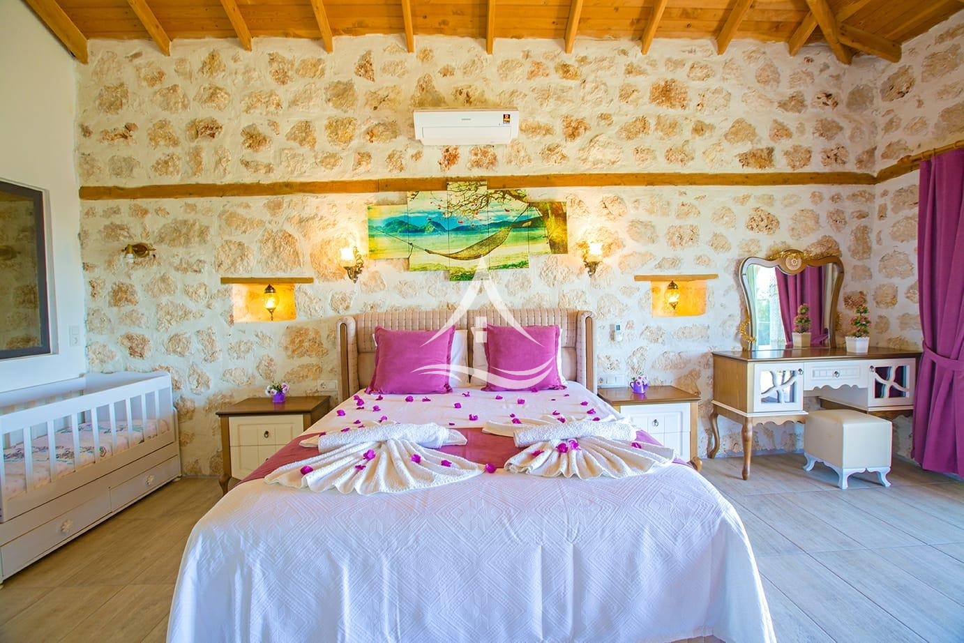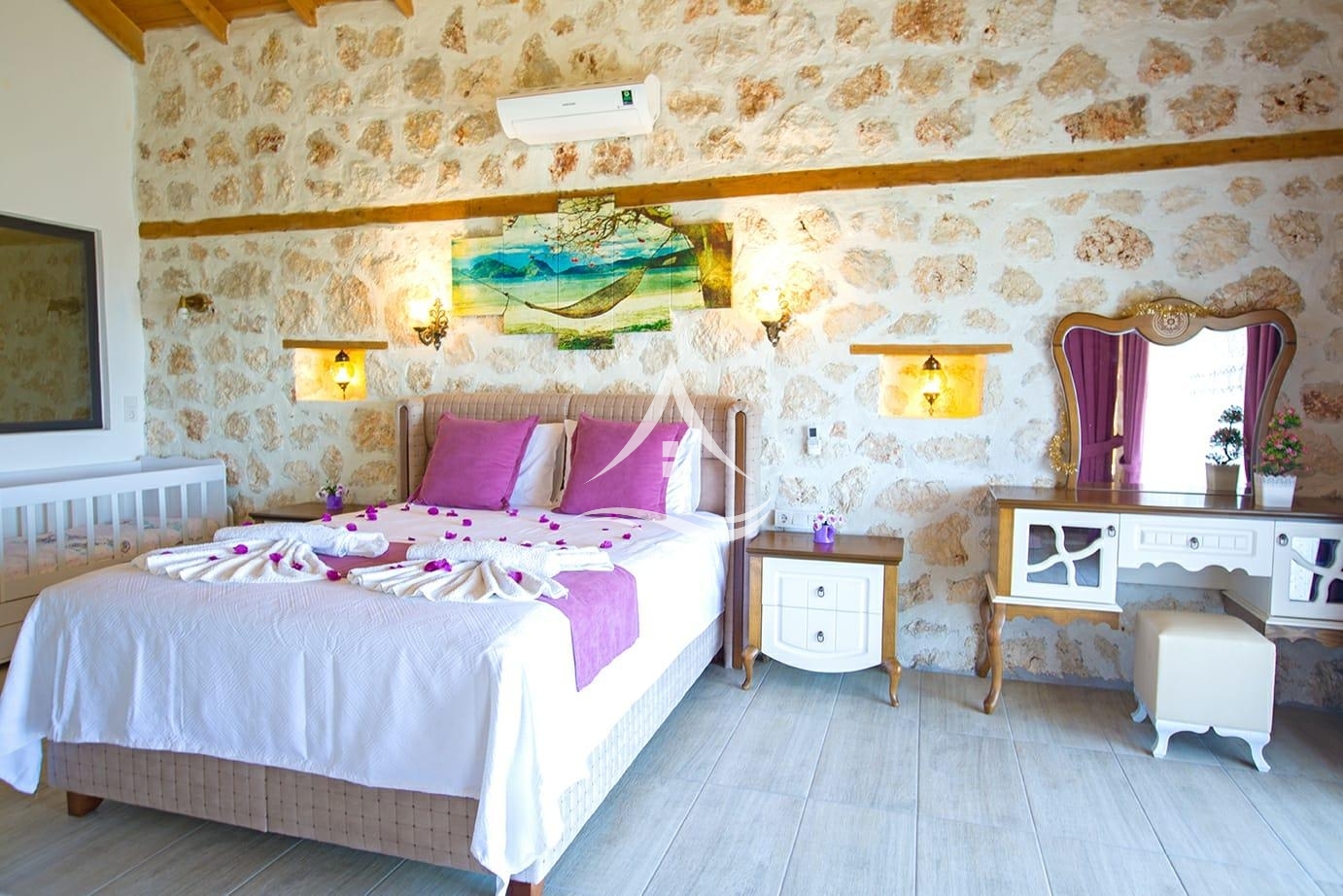 1. Yatak Odası : 1 Adet Çift Kişilik Yatak, Bebek Yatağı ,Elbise Dolabı, Tv ,Makyaj Masası , Klima, Komodin , Ebeveyn Banyo , Jakuzi