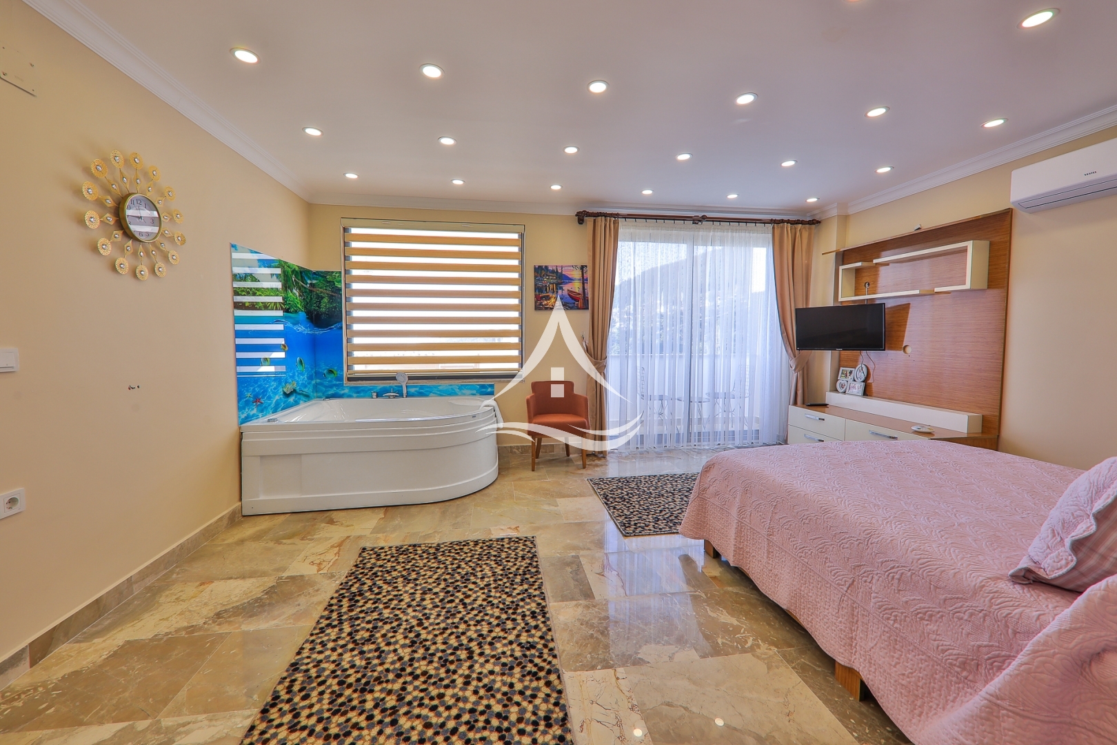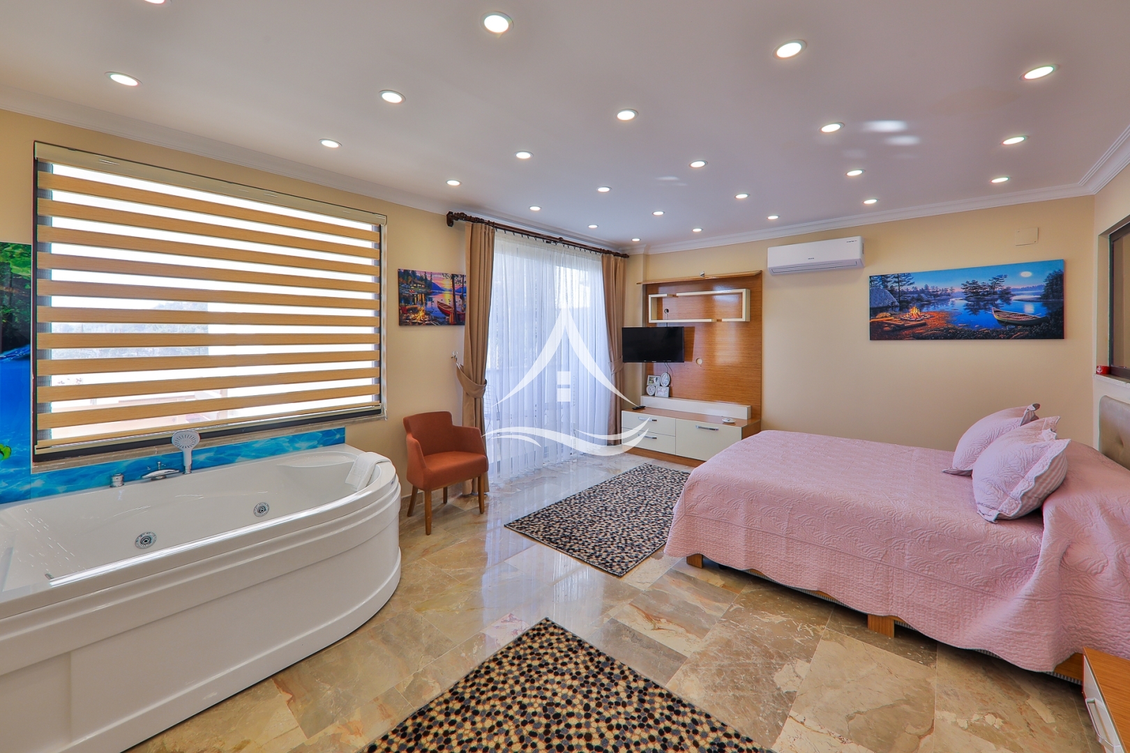 5. Yatak Odası : 1 Adet Çift Kişilik Yatak, 1 Adet Tek Kişilik Yatak  Klima , Komodin ,  Elbise Dolabı, Makyaj Masası, TV, Ebeveyn  Banyo, Jakuzi