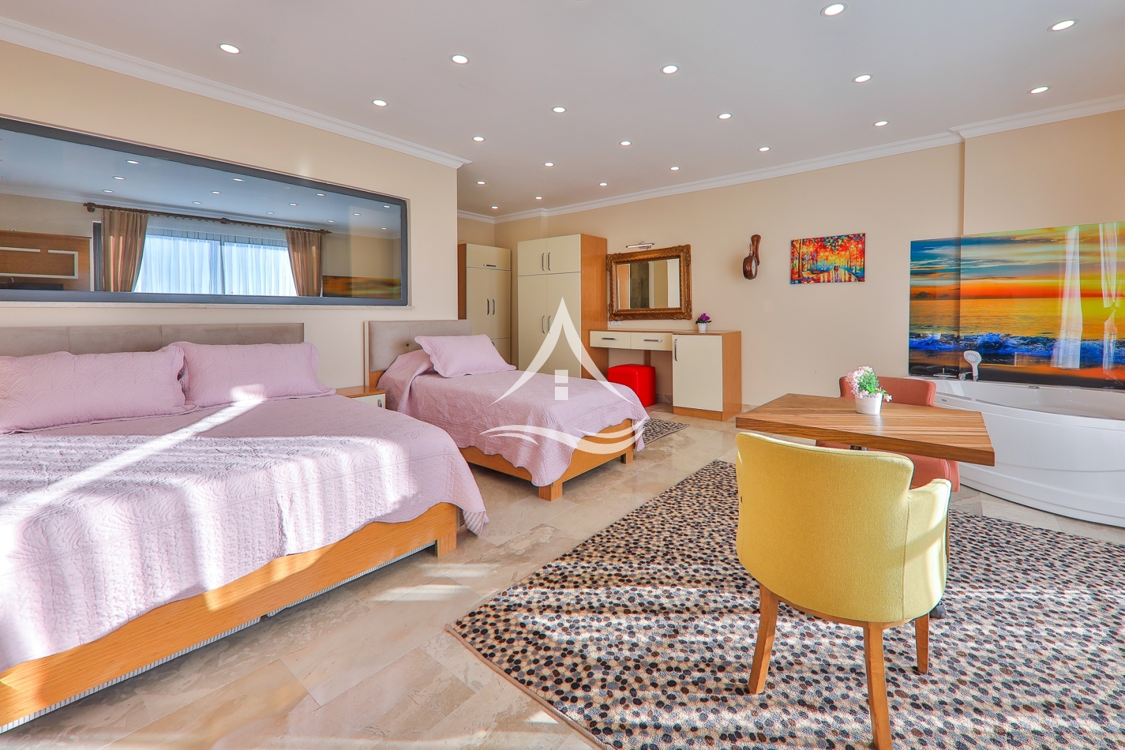 1. Yatak Odası :  1 Adet Çift Kişilik Yatak,  Klima , Komodin ,  Elbise Dolabı, Makyaj Masası, TV, Ebeveyn  Banyo, Jakuzi