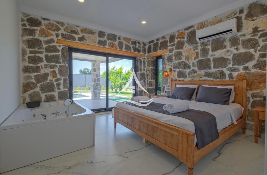 1.Yatak Odası : 1 Adet Çift Kişilik Yatak, Klima, Ebeveyn Banyo, Jakuzi, Isıtmalı Havuz Alanına Çıkış