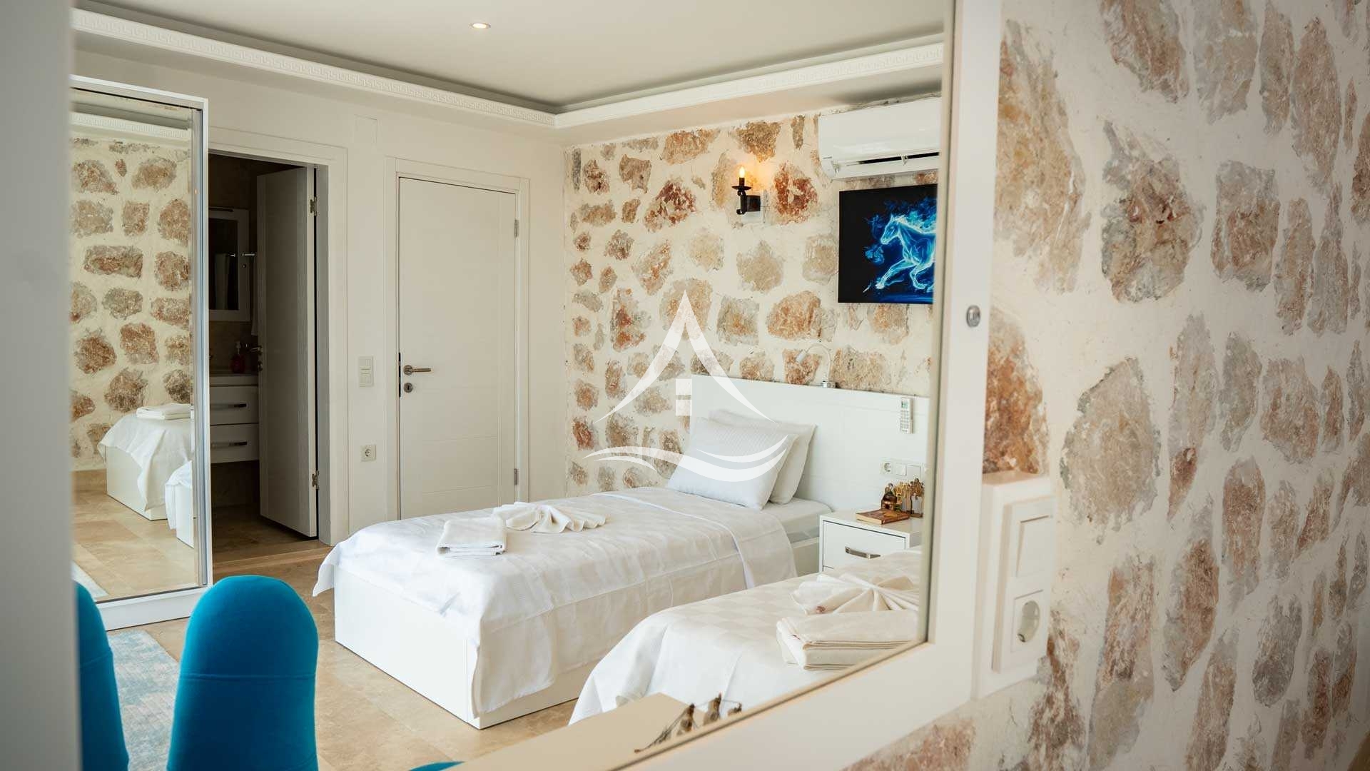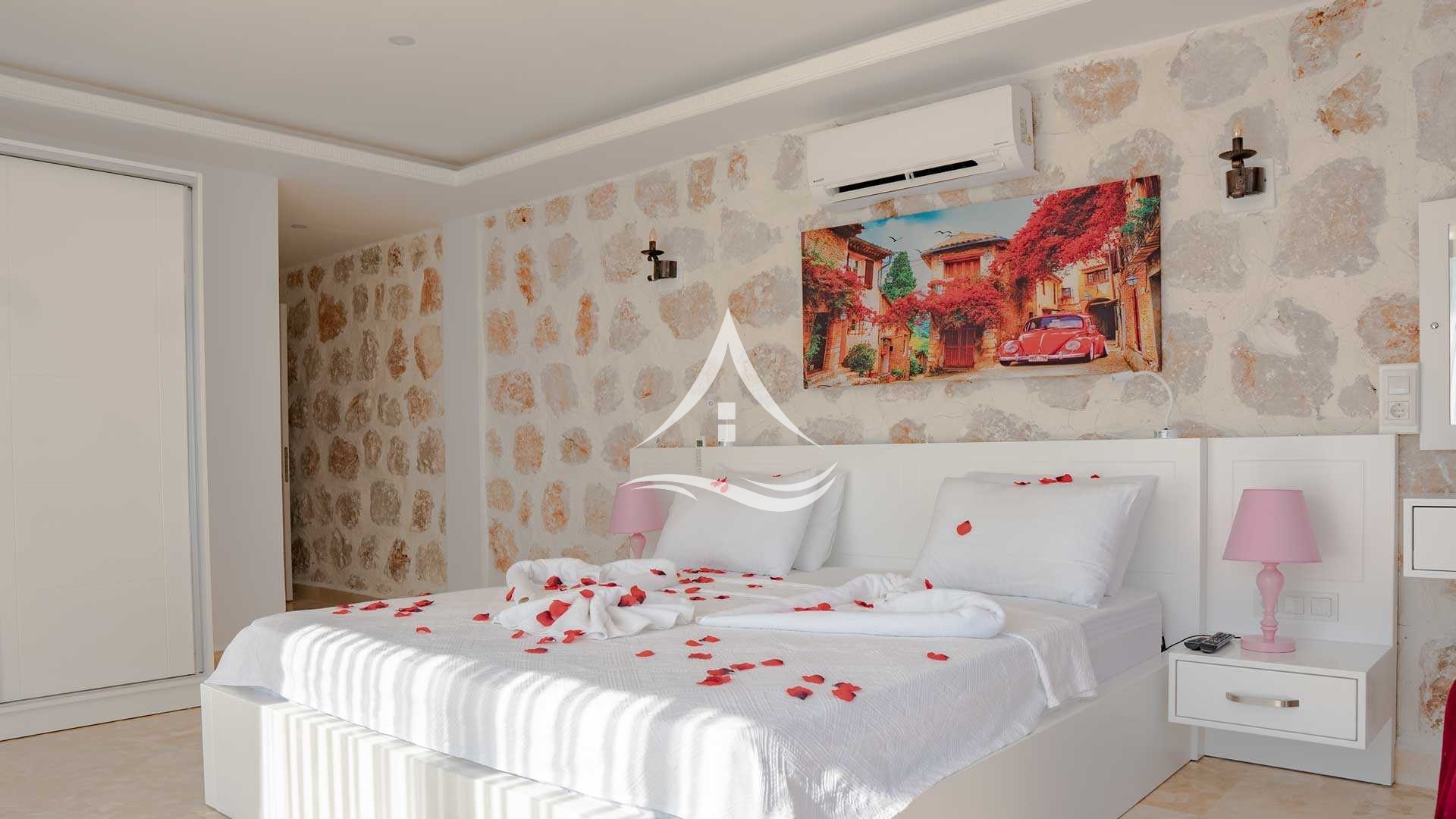 1. Yatak Odası : 1 Adet Çift Kişilik Yatak, Klima, Tv, Ebeveyn Banyo