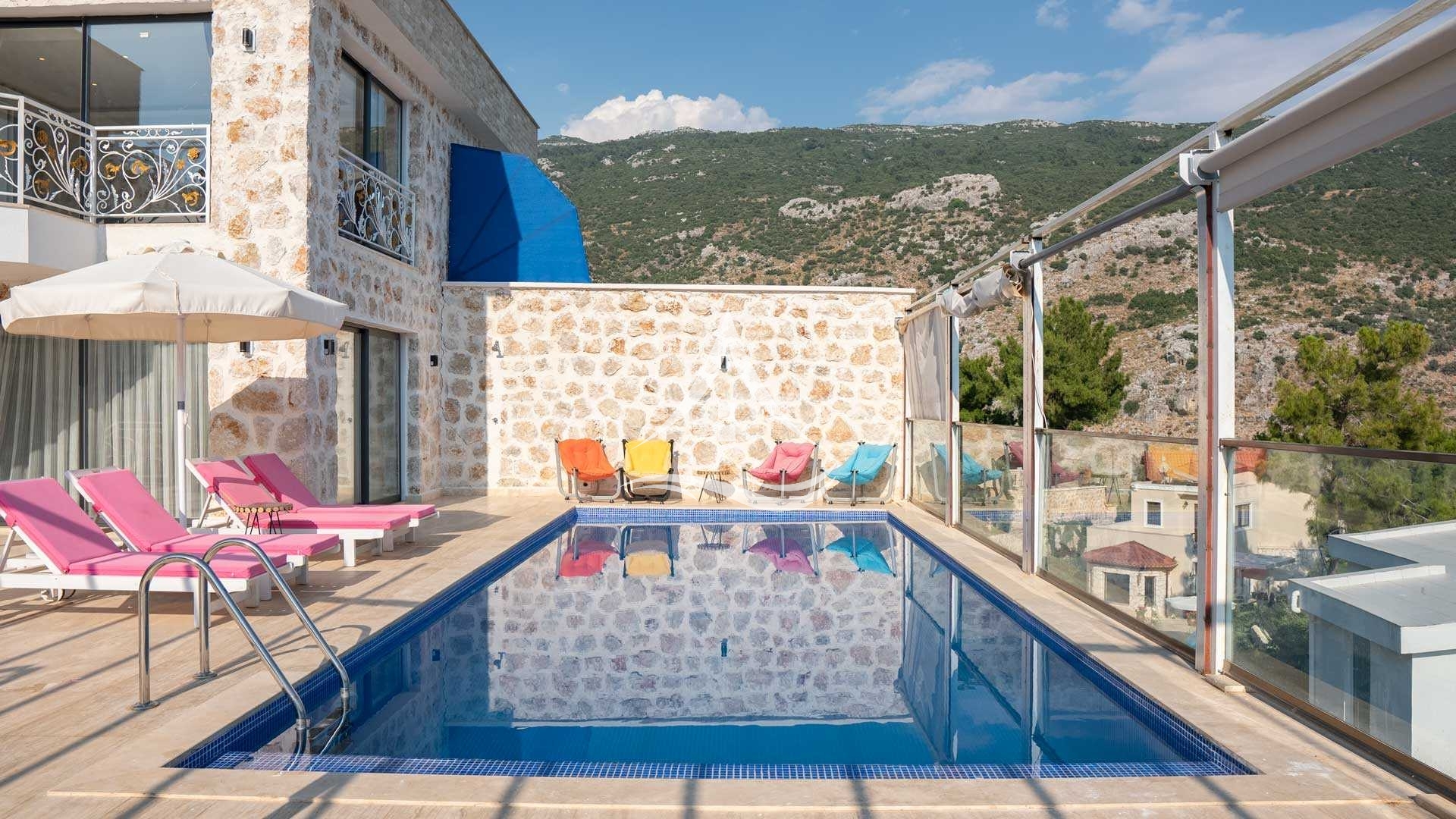 Kalkan İslamlar bölgesinde bulunan Villa Nar 3 merkeze 8 dakika sürüş mesafesindedir. 4 Kişilik konaklamalar için uygun kapasiteye sahip villamız korunaklıdır. Havuz ve bahçe alanı büyük çoğunlukla dışarıdan görülmemektedir. Büyük bir alan içerisinde konumlandırılmış 10 adet villadan bir tanesidir. Birbirinden bağımsız olarak inşa edilmiş villalarımızın ortak alanında market, restaurant, mini hayvanat bahçesi ve çocuk oyun parkı bulunmaktadır. Kış aylarında yapılacak konaklamalarda havuz ısıtma ücreti günlük 500 TL'dir.