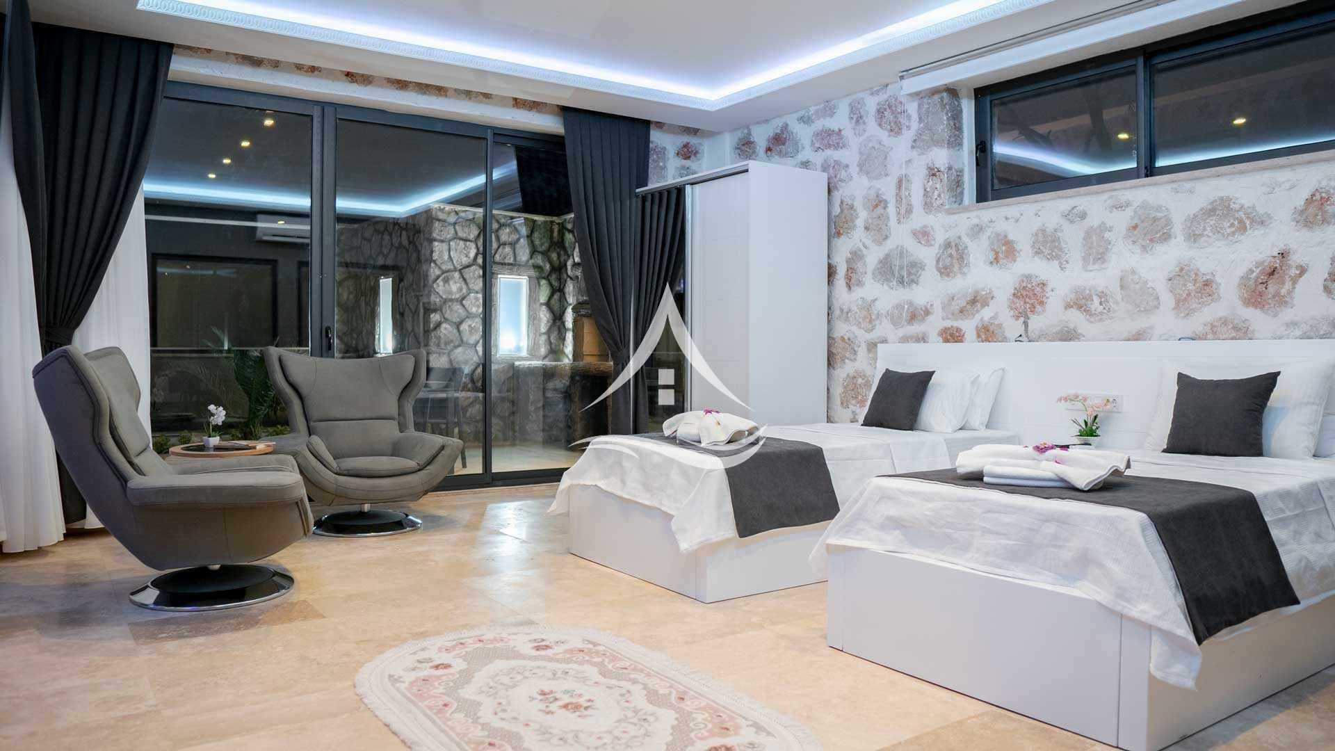 2. Yatak Odası : 2 Adet Tek Kişilik Yatak, Klima, Ebeveyn Banyo, Havuz Terasına Çıkış