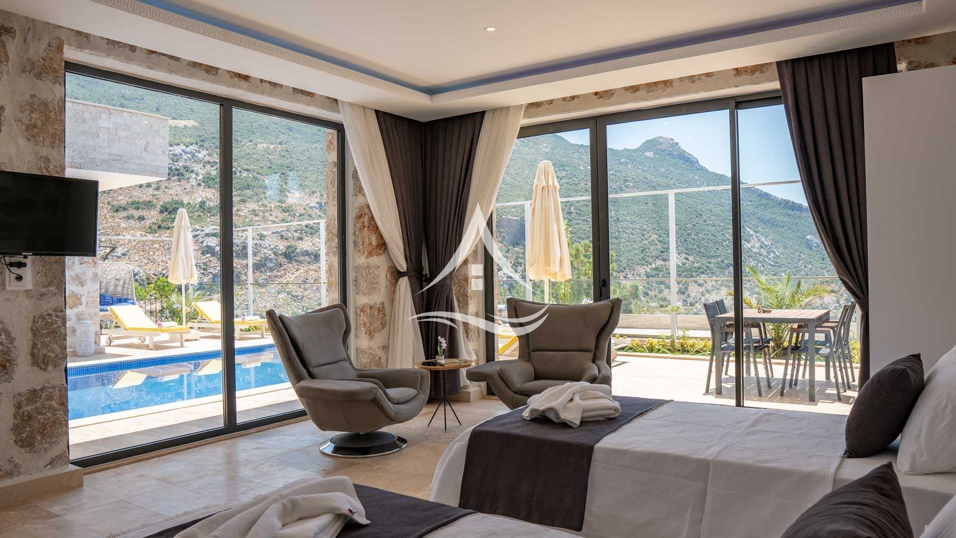 1. Yatak Odası : 1 Adet Çift Kişilik Yatak, Klima, Tv, Ebeveyn Banyo, Jakuzi, Havuz Terasına Çıkış