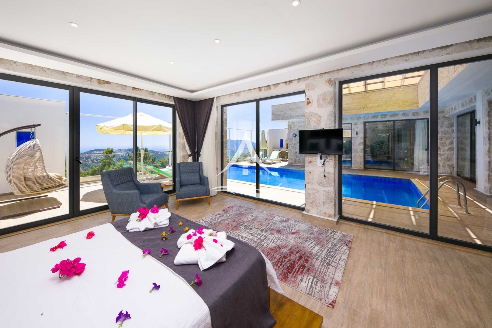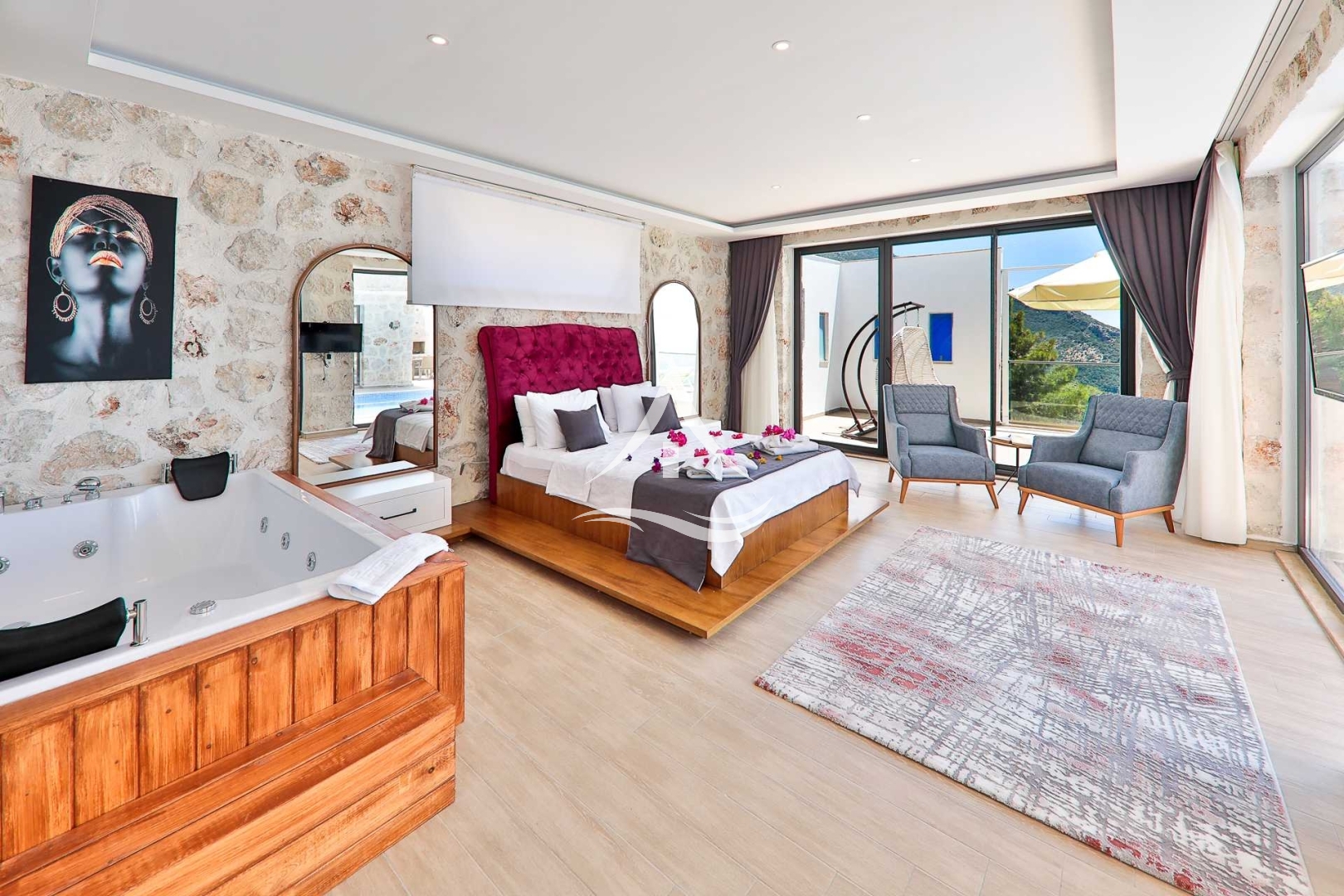 1. Yatak Odası : 1 Adet Çift Kişilik Yatak, Klima, Tv, Ebeveyn Banyo, Jakuzi, Havuz Teras Çıkışı